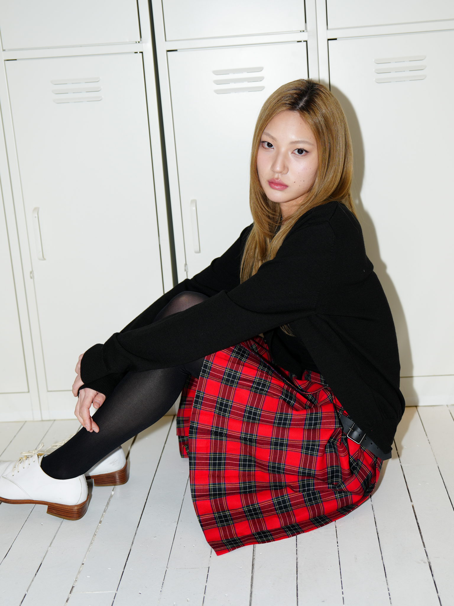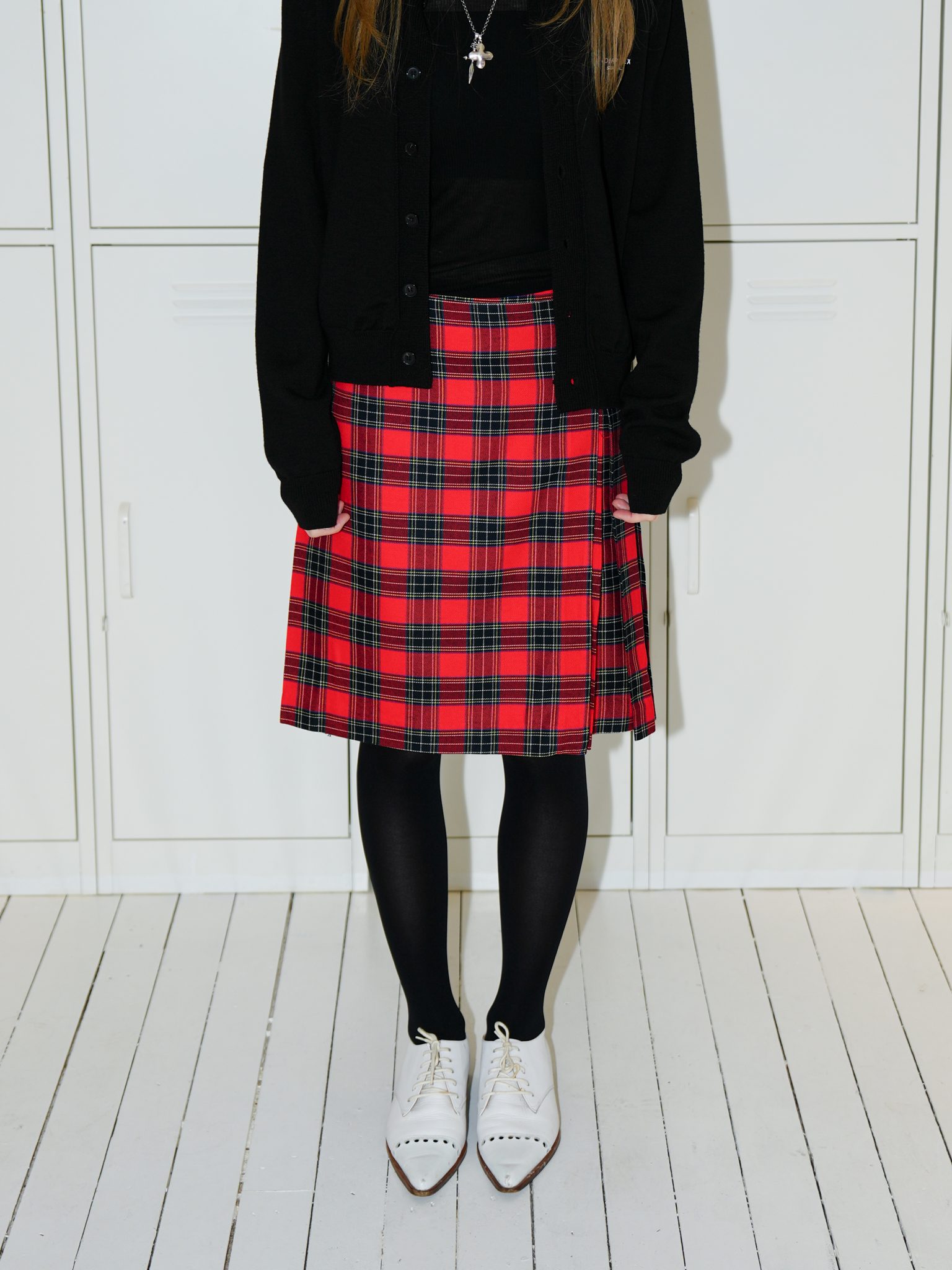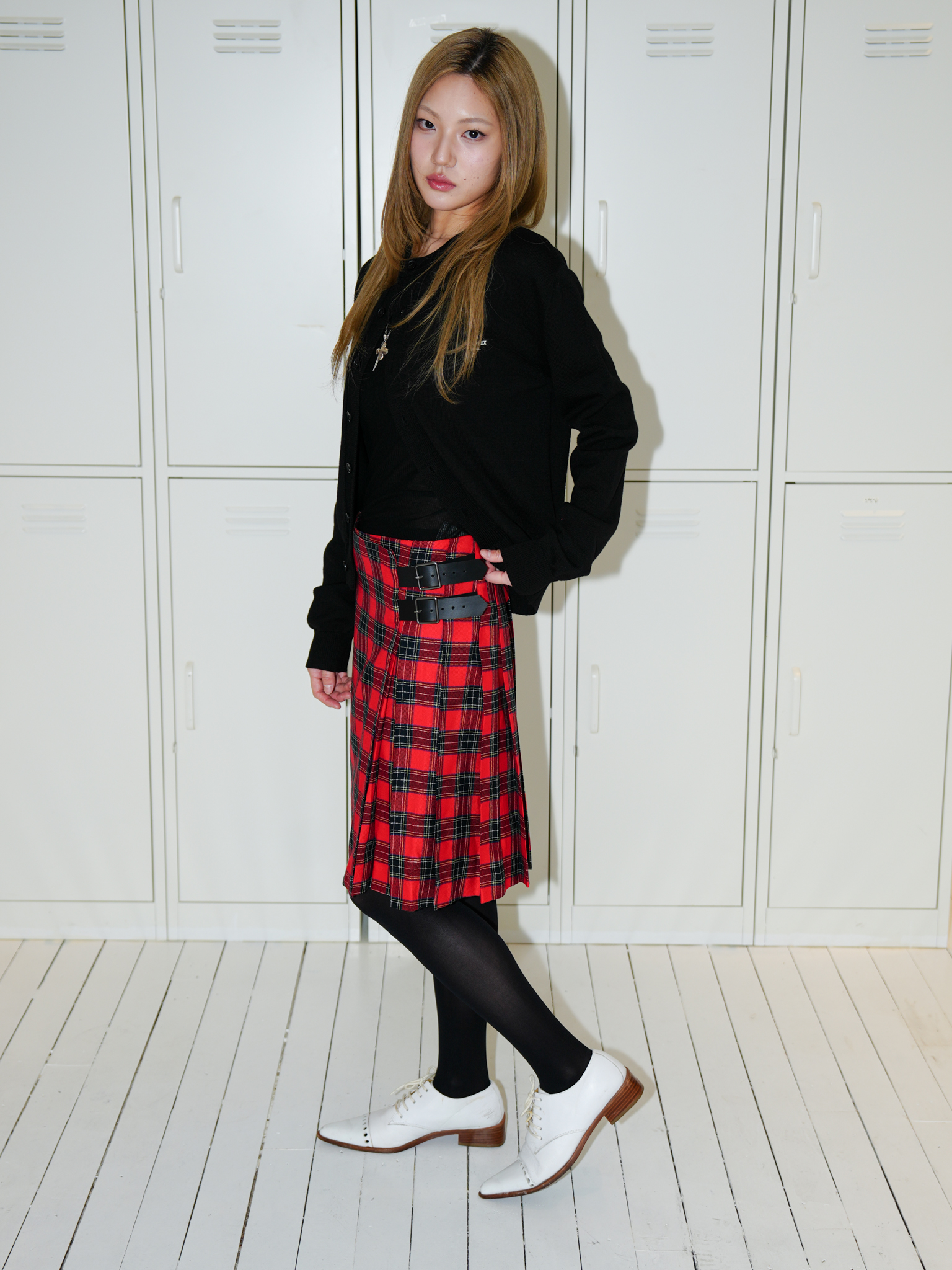 ARTIST BUCKLE PLEATED WRAP MIDI SKIRT (RED)