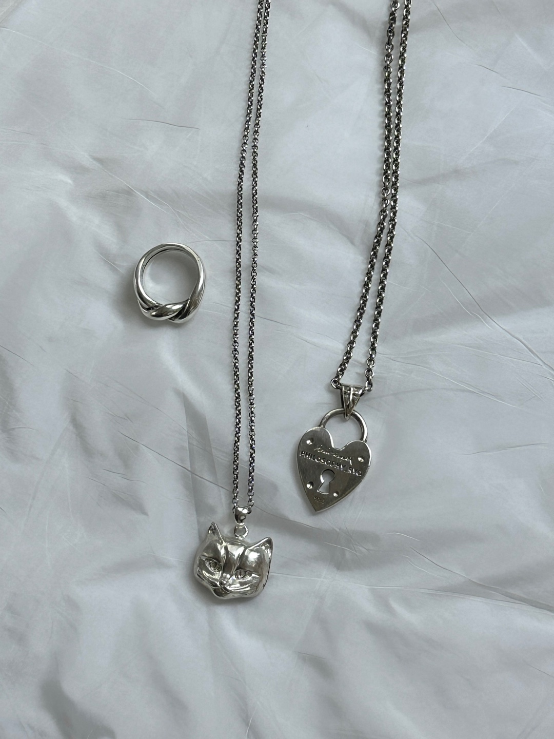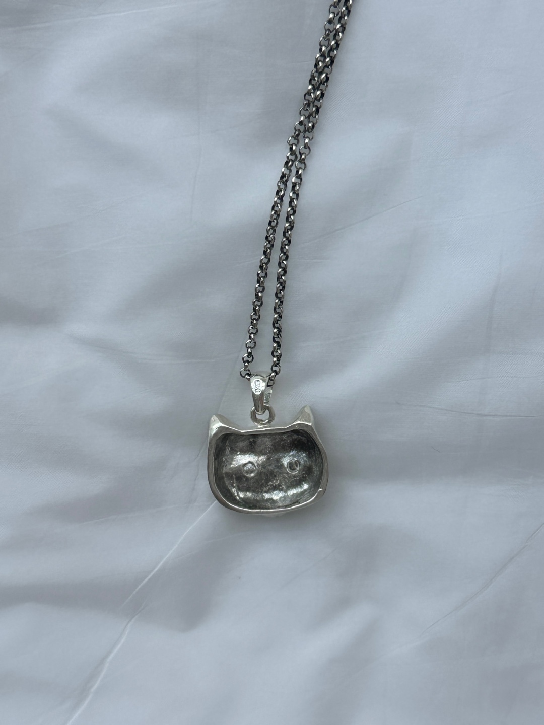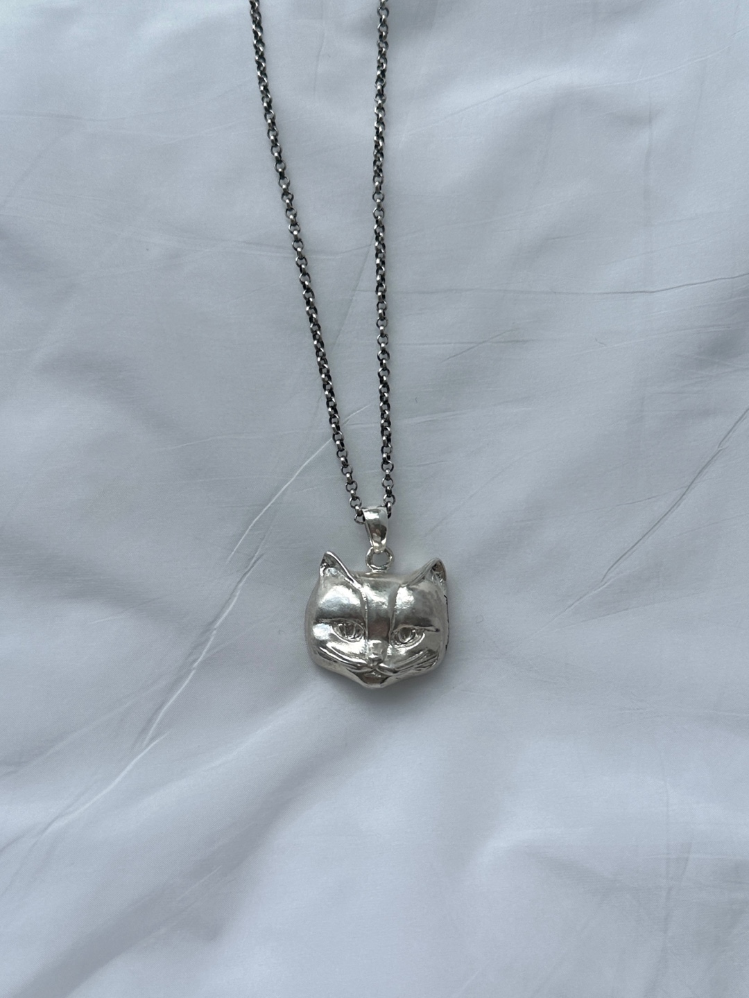 고양이 얼굴을 섬세하게 표현한 실버 펜던트 목걸이입니다.