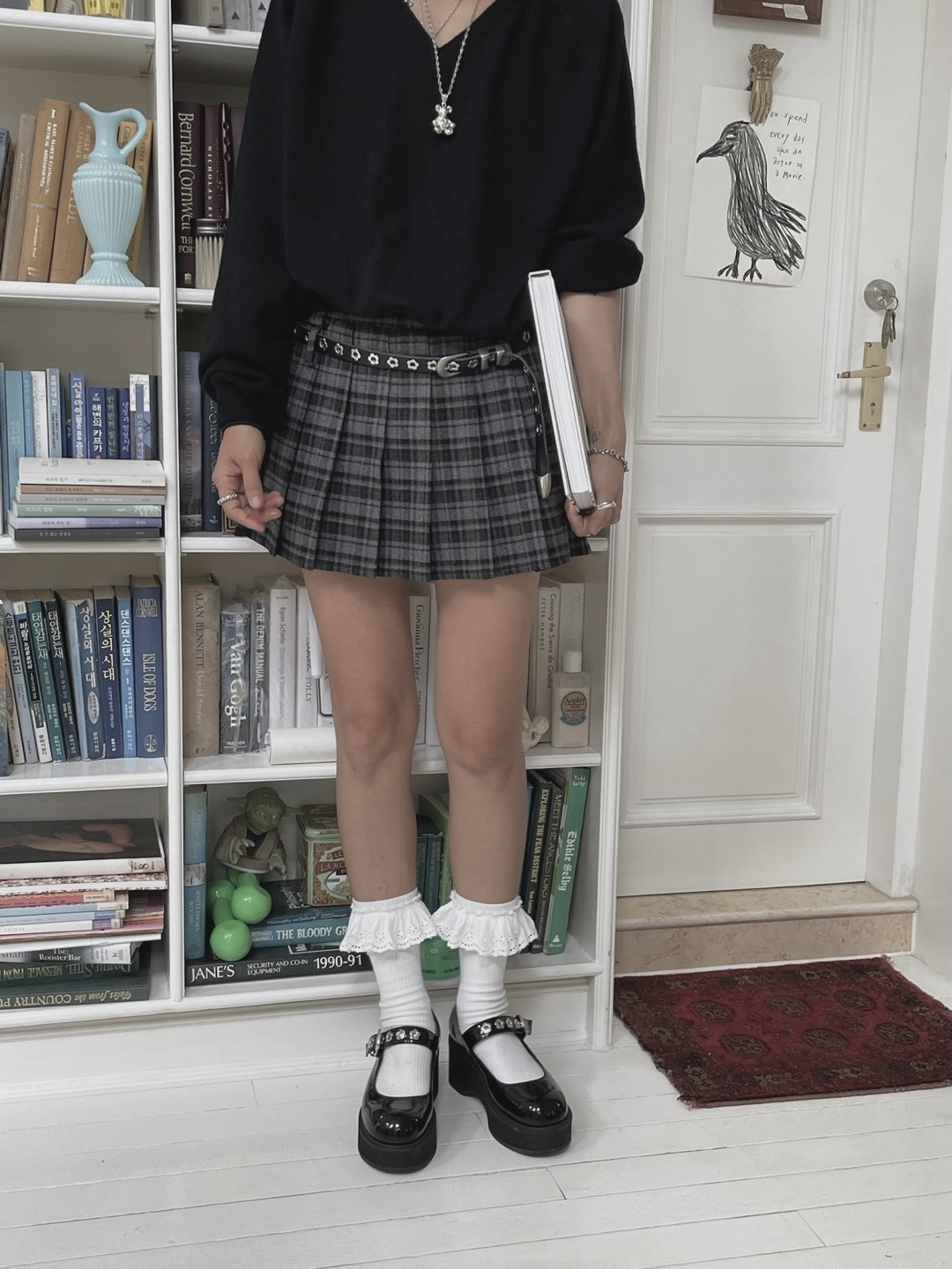 스타일리시하게 착용할 수 있는 체크 플리츠스커트입니다