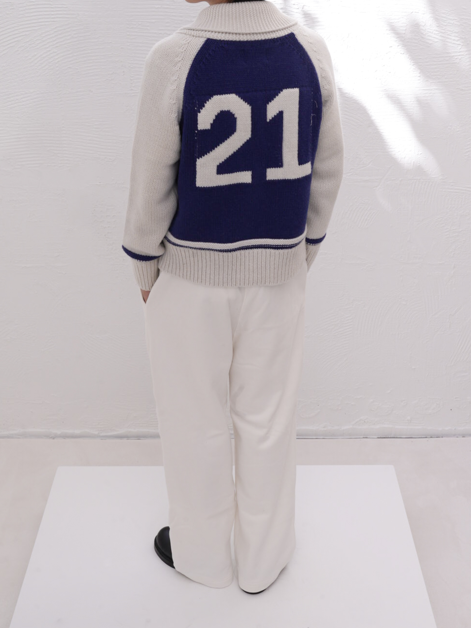 21 코위찬 니트 집업은 램스울 혼방 원단을 사용해