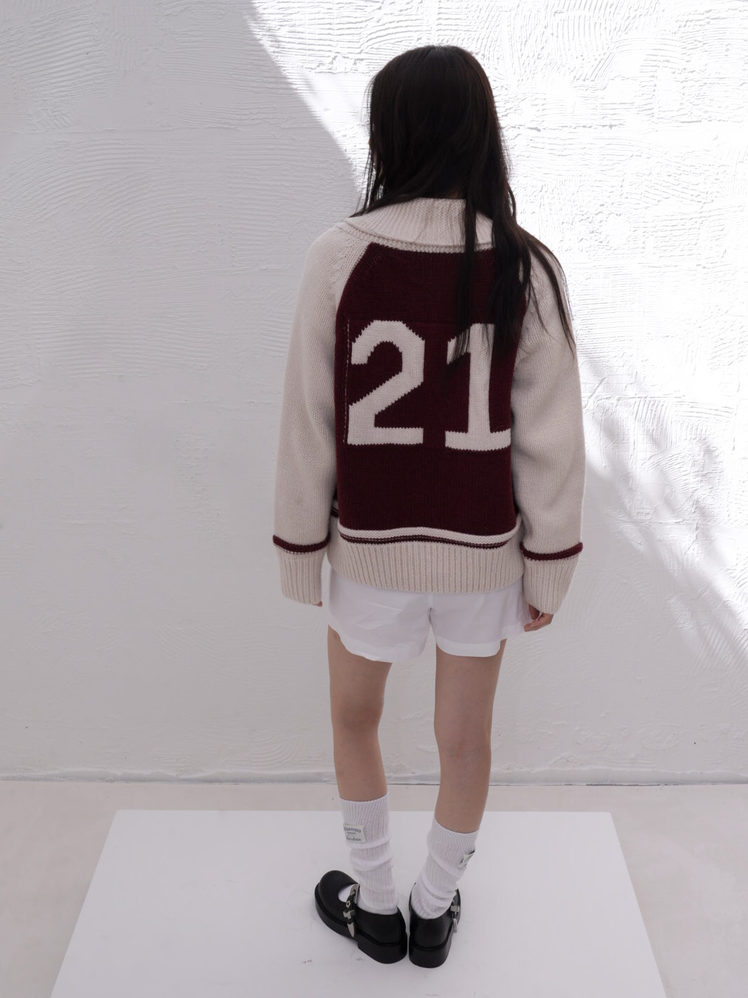 앞뒤판에 숫자 21 그래픽을 배색으로 디자인해