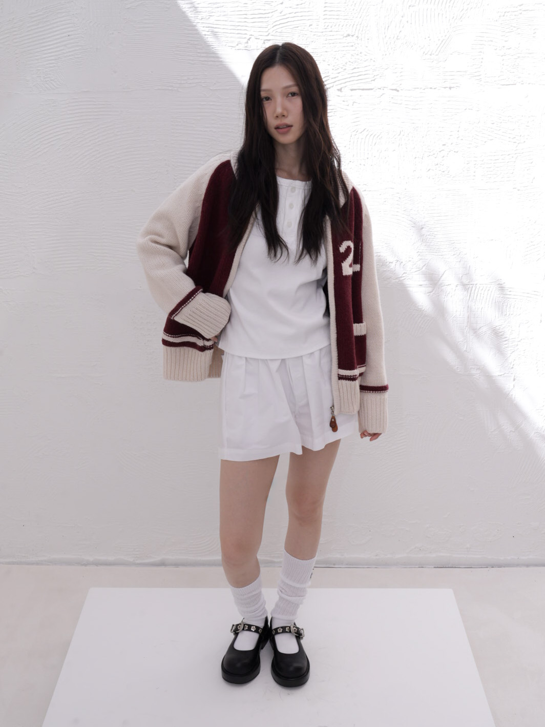 21 코위찬 니트 집업은 램스울 혼방 원단을 사용해