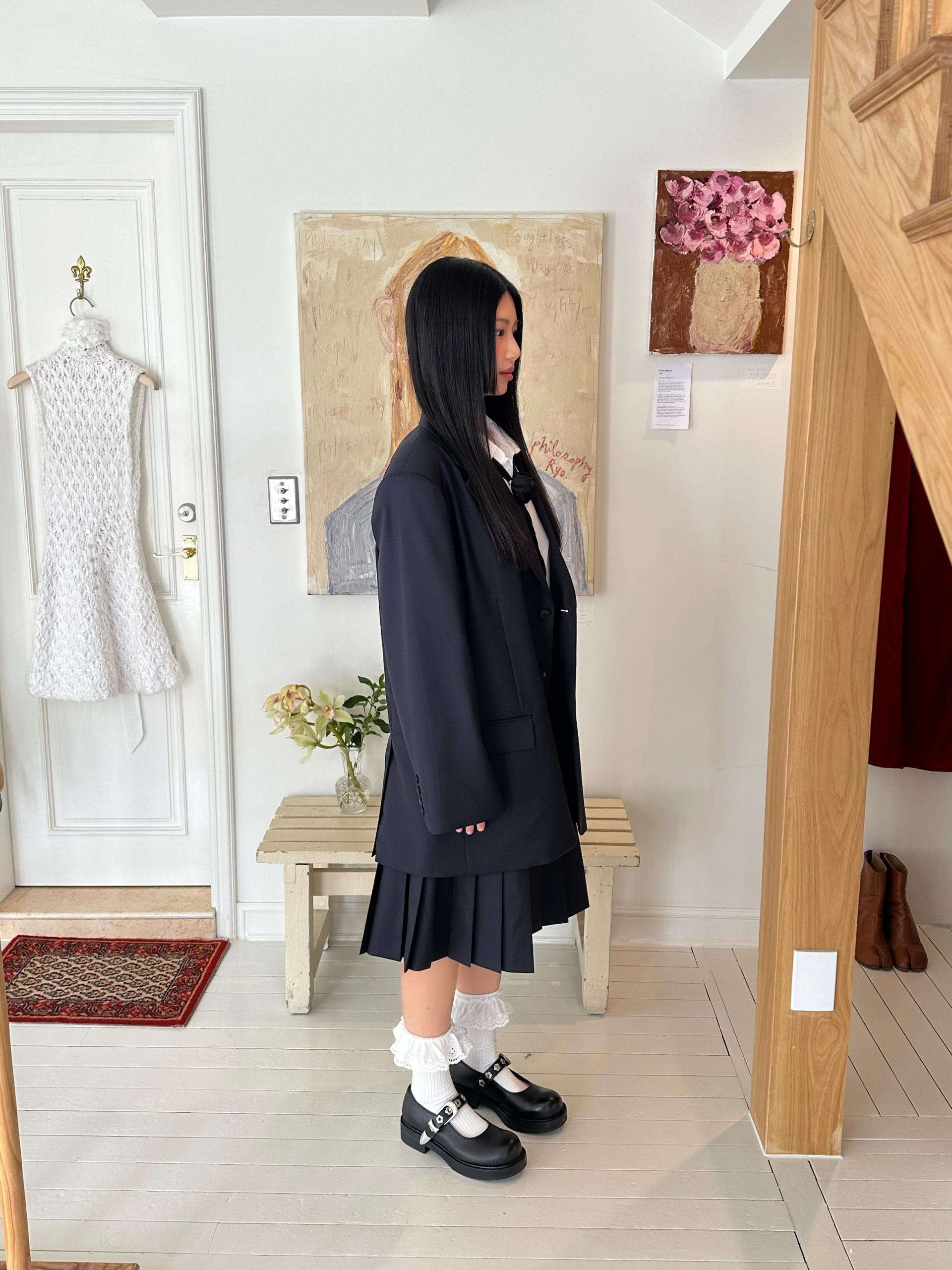 아티스트의 플리츠 스커트와 함께 셋업으로 연출하면