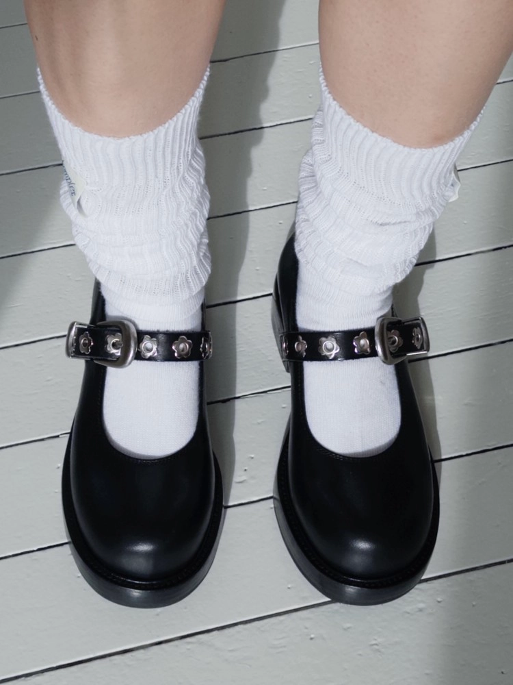 리얼 소가죽으로 정성스럽게 제작된 아티스트 플라워 메리제인은