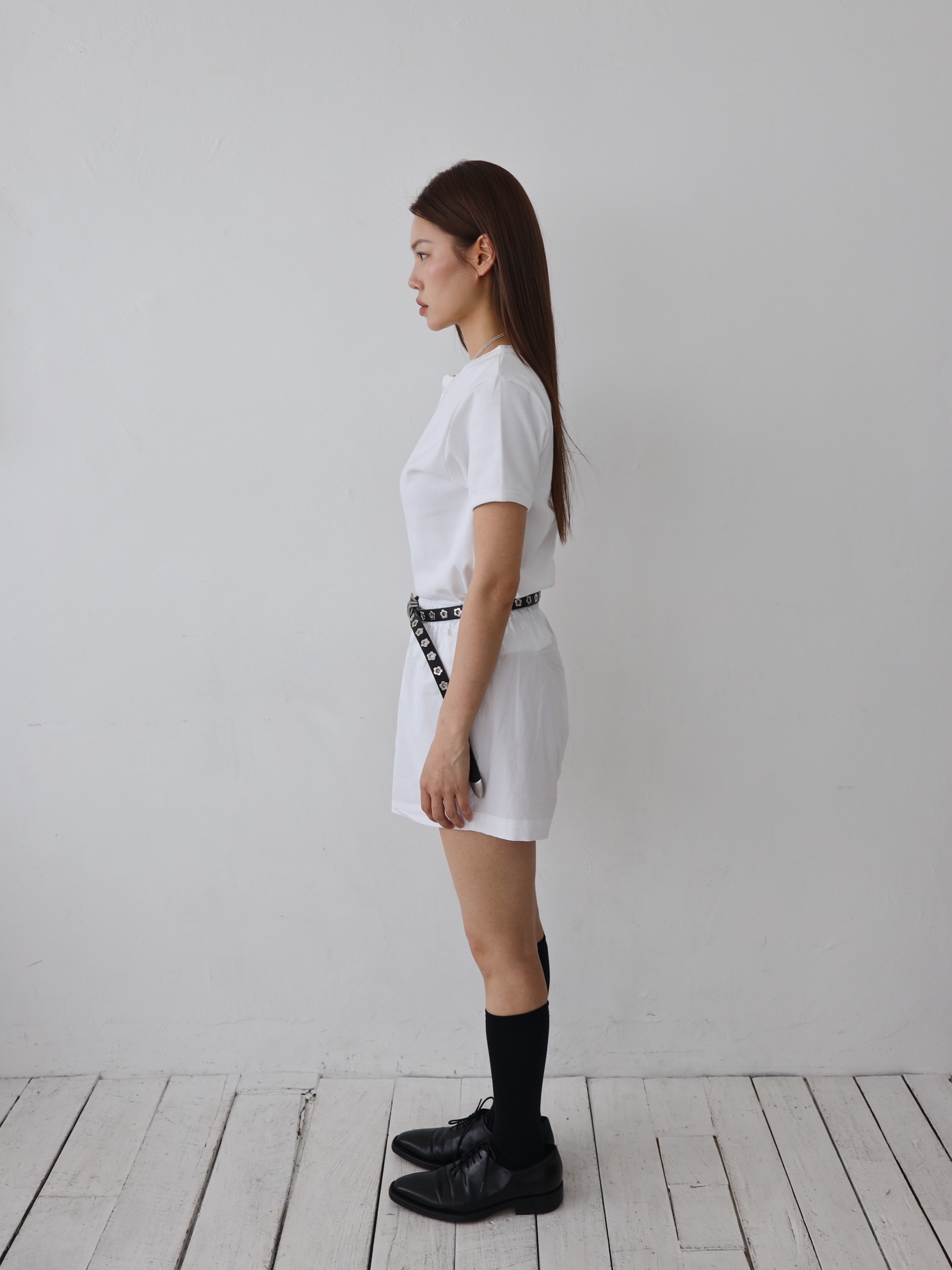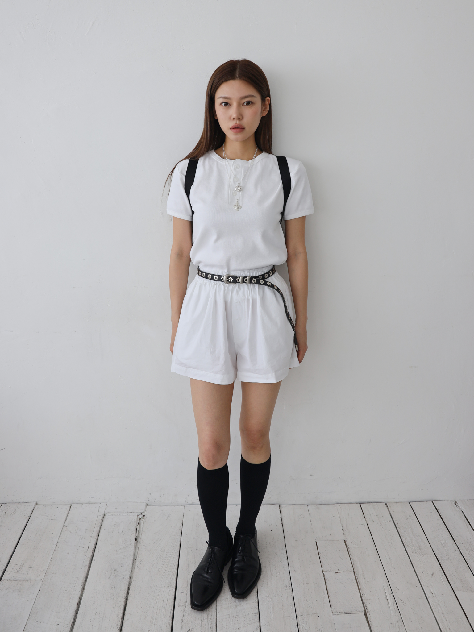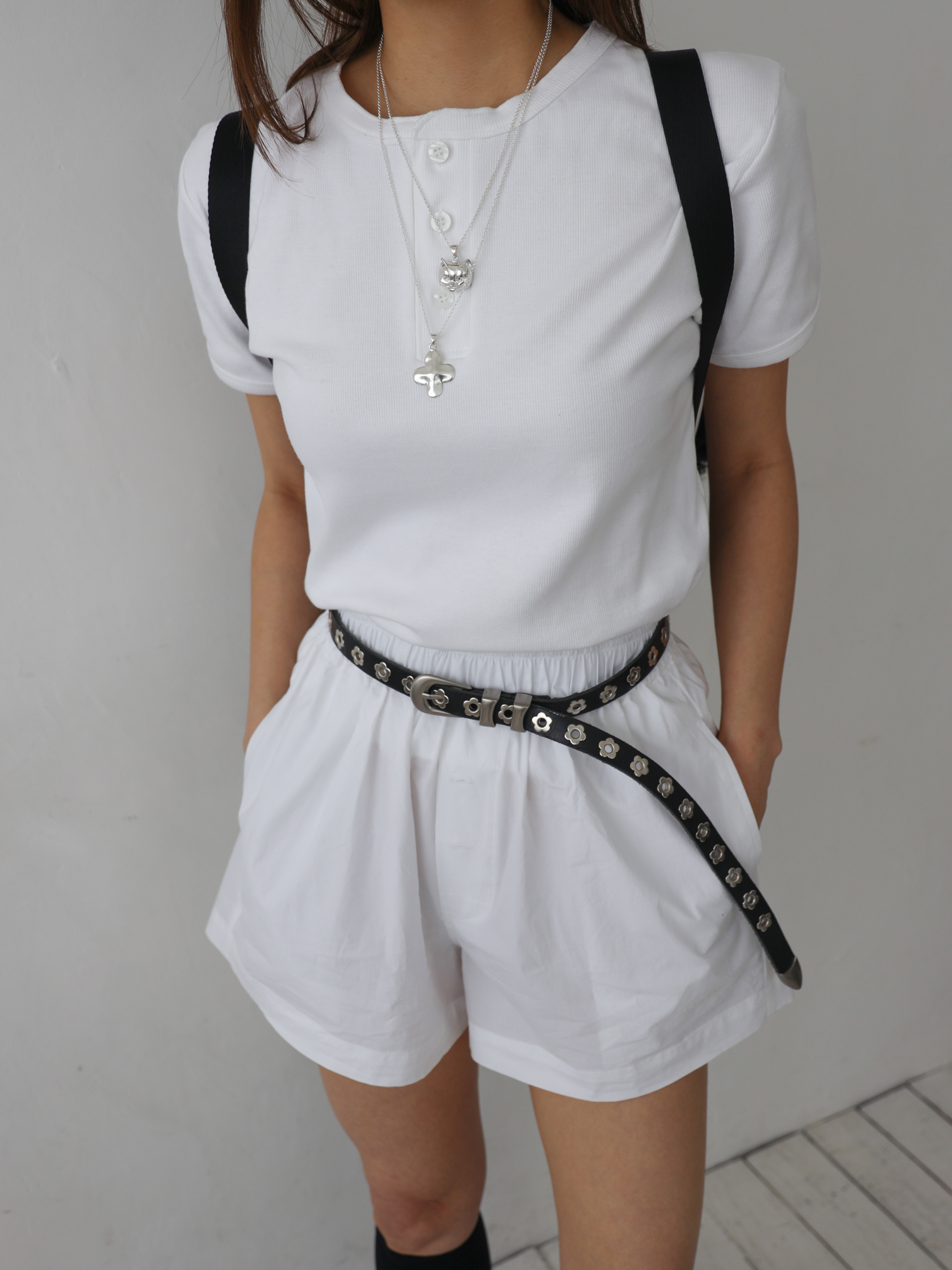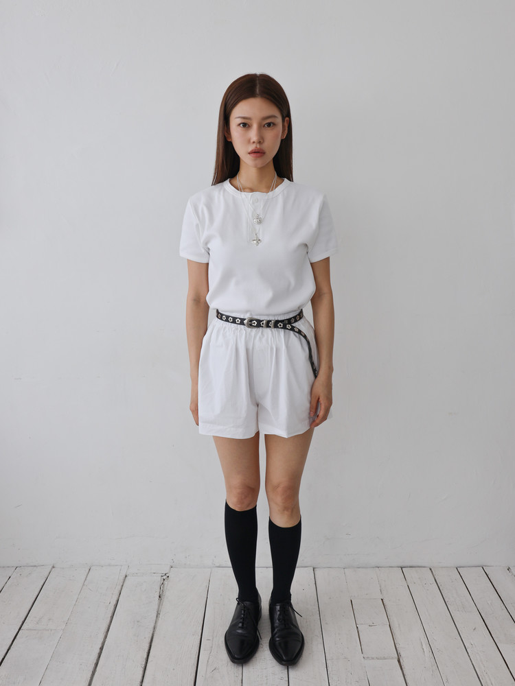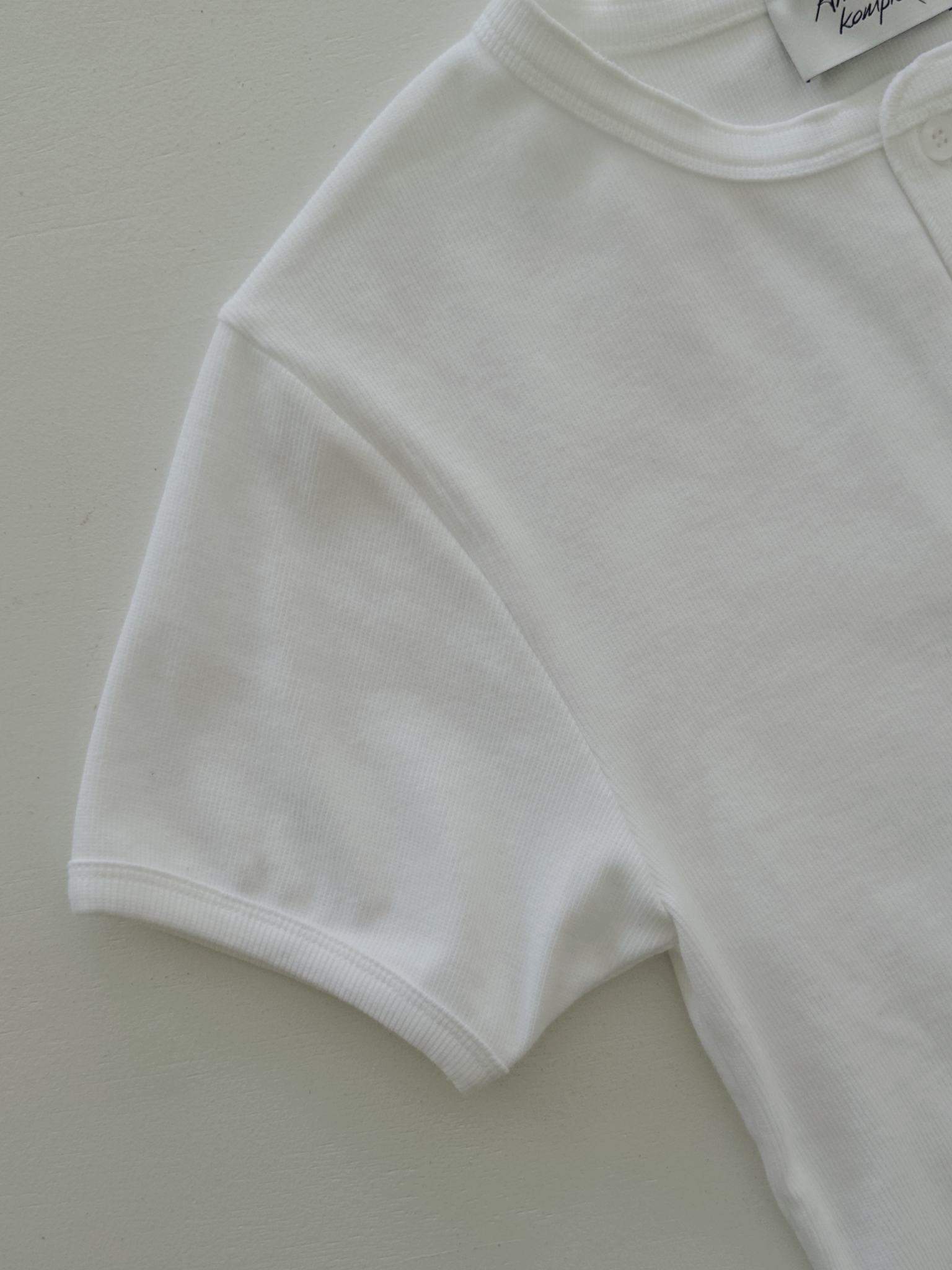 탄탄한 코튼 골지 원단으로 제작된 아티스트 베이직 헨리넥 티셔츠는
