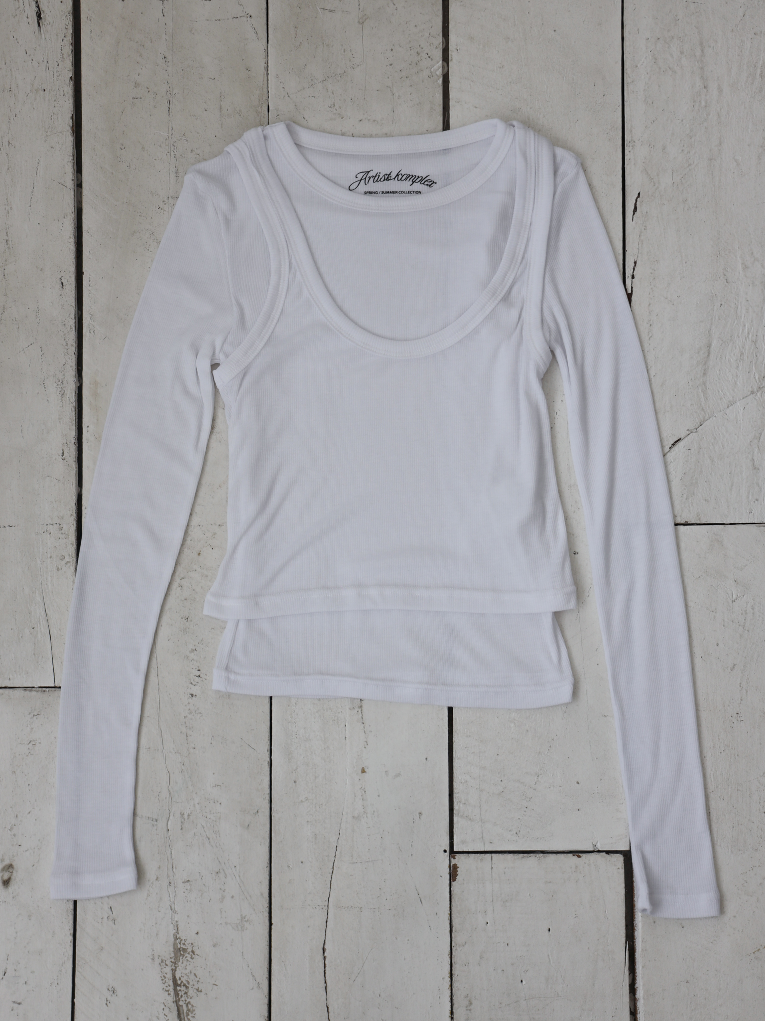 긴팔 위에 나시가 레이어드된 듯한 디자인으로,