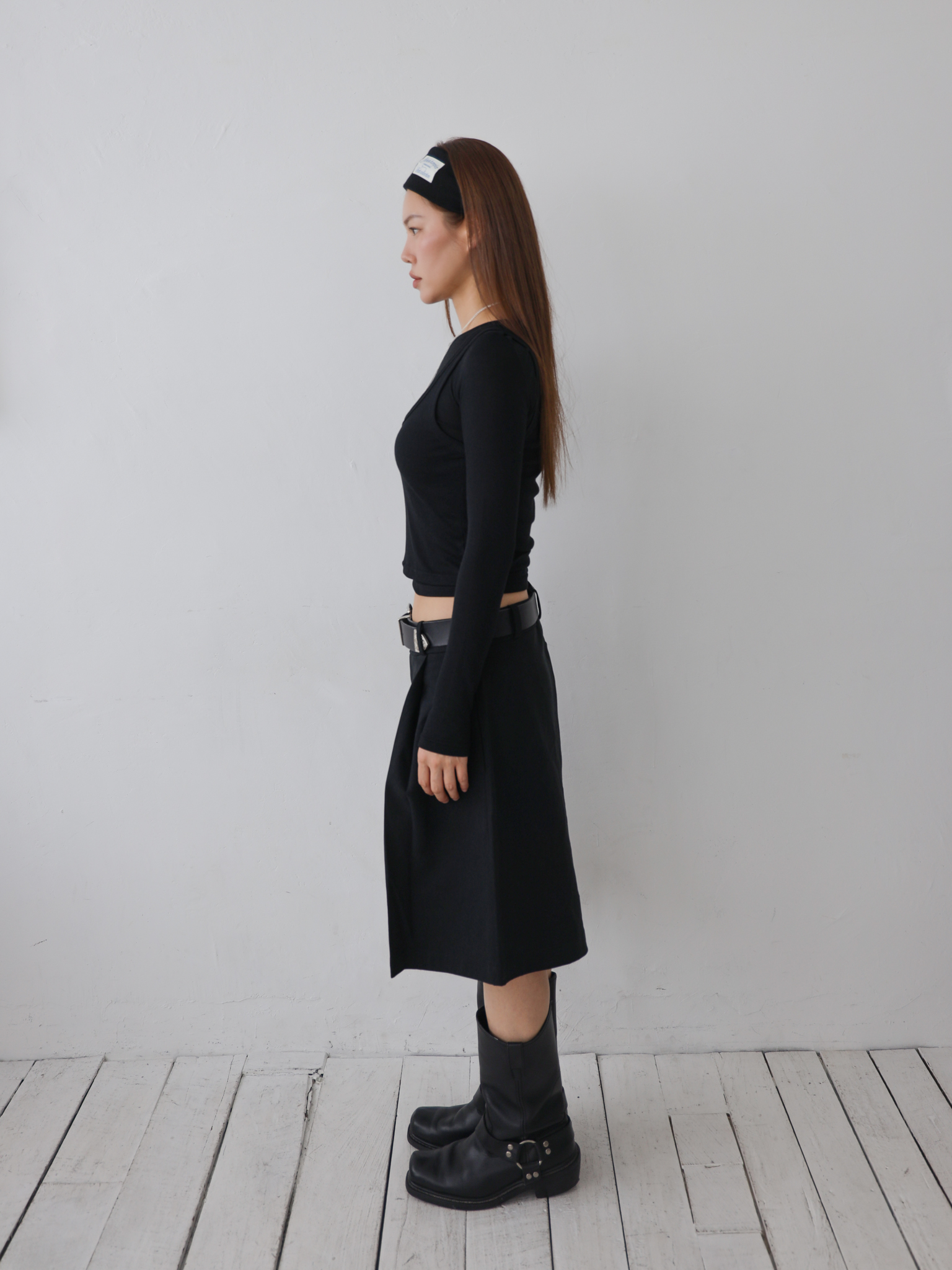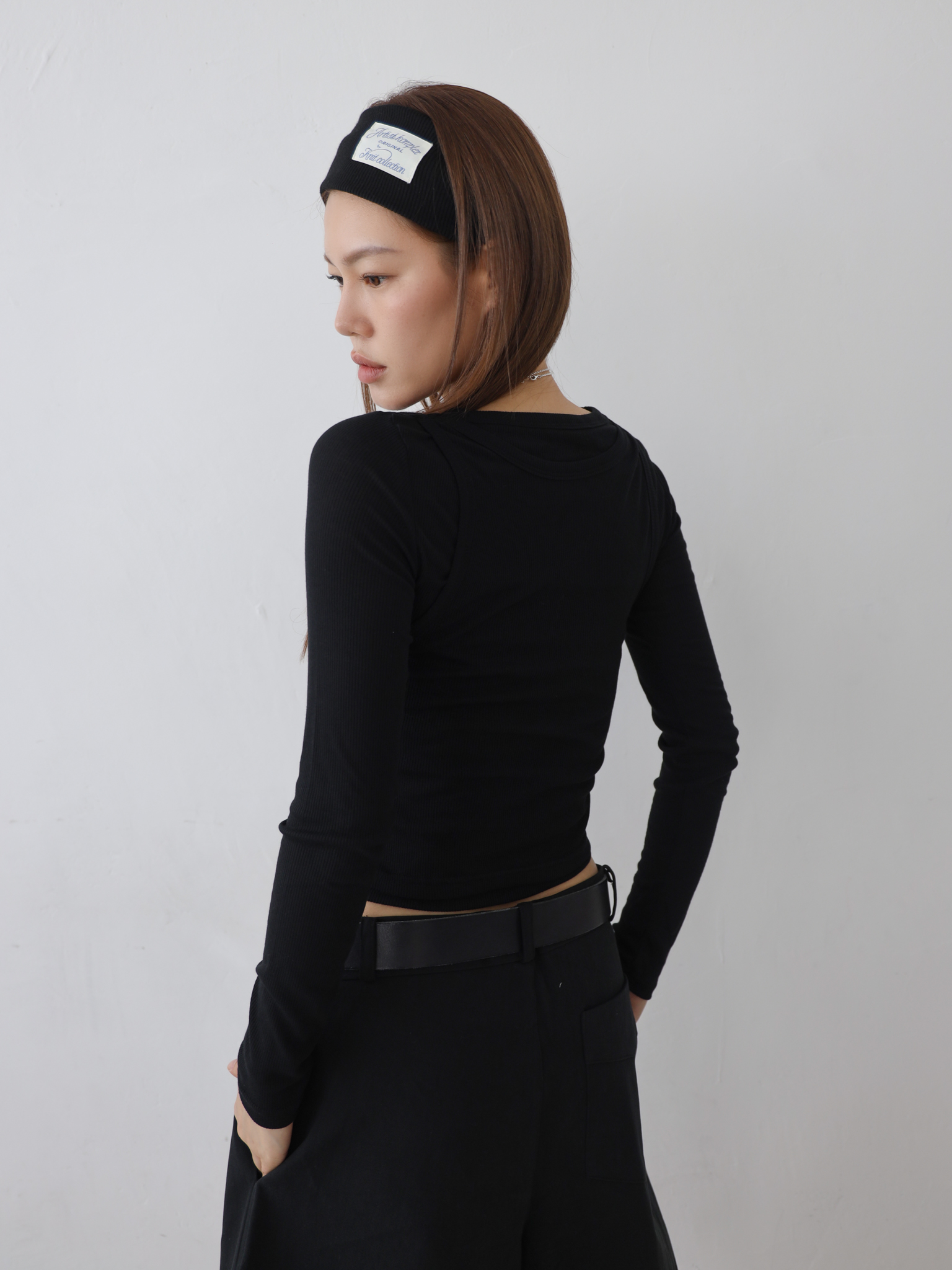 얇은 골지 원단으로 제작된 아티스트 레이어드 롱 슬리브는