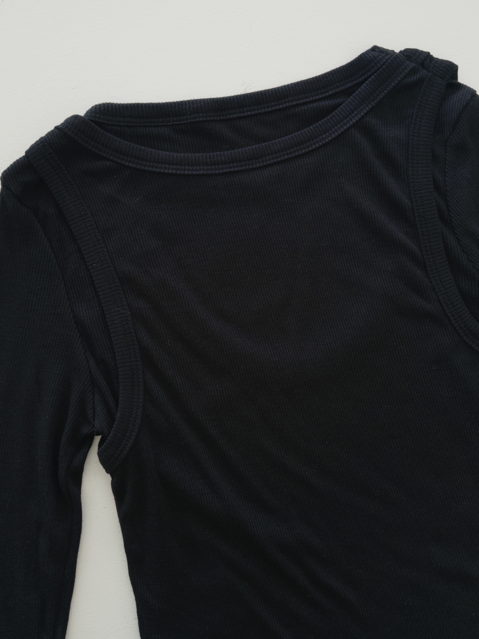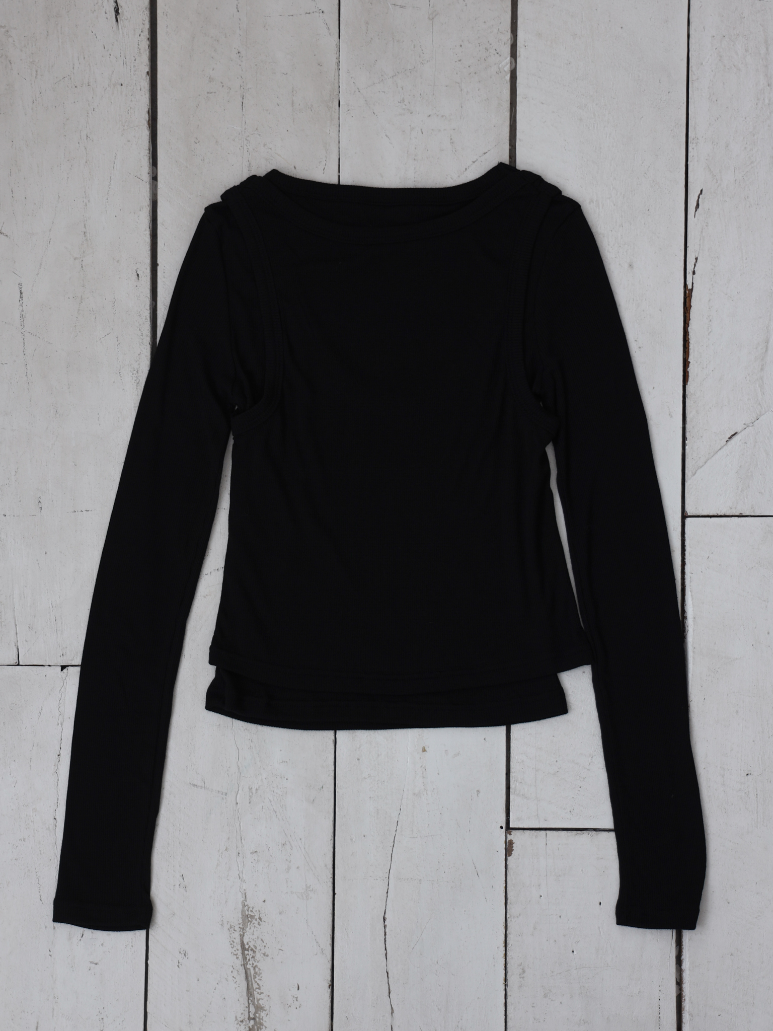 긴팔 위에 나시가 레이어드된 듯한 디자인으로,
