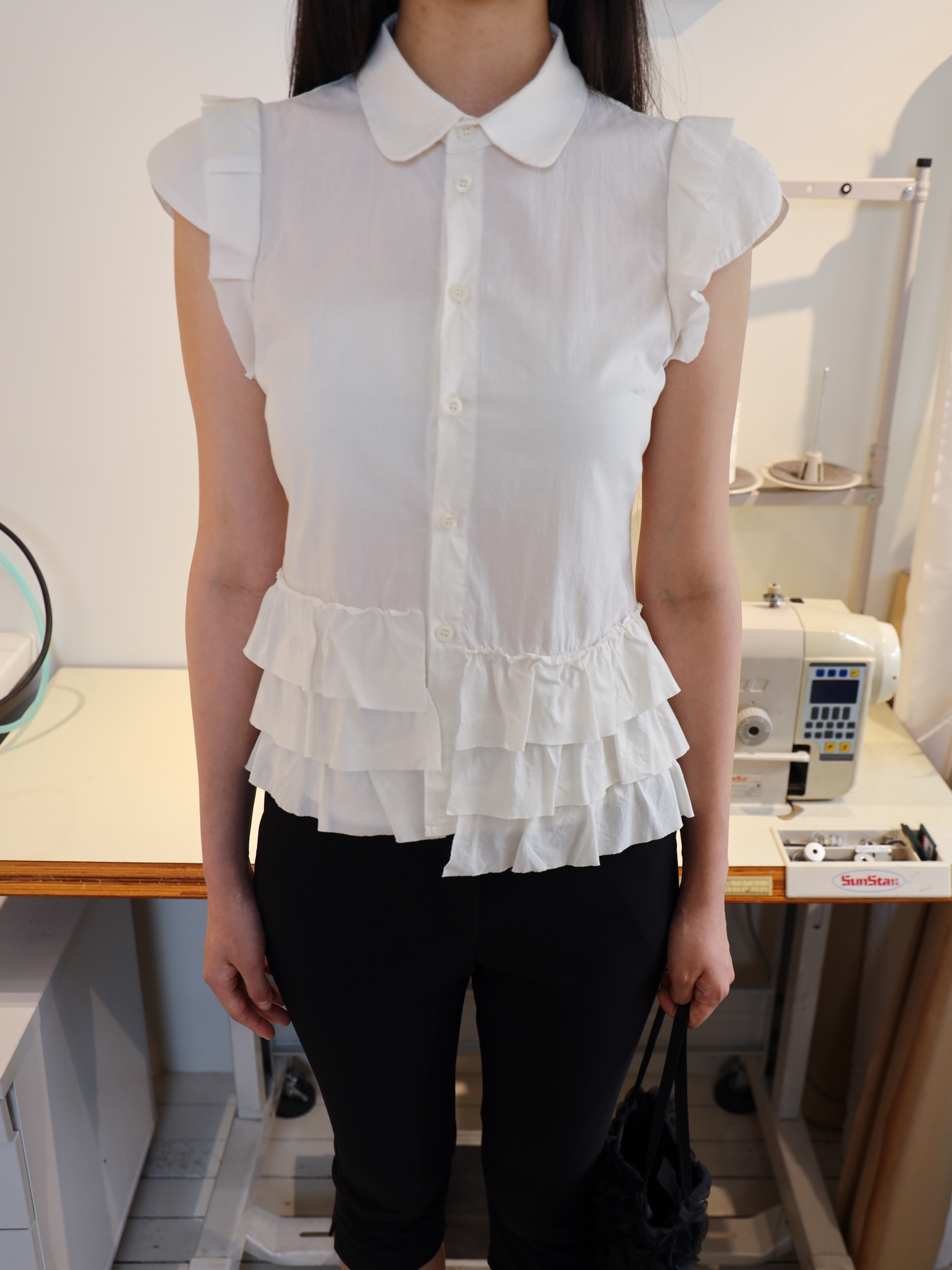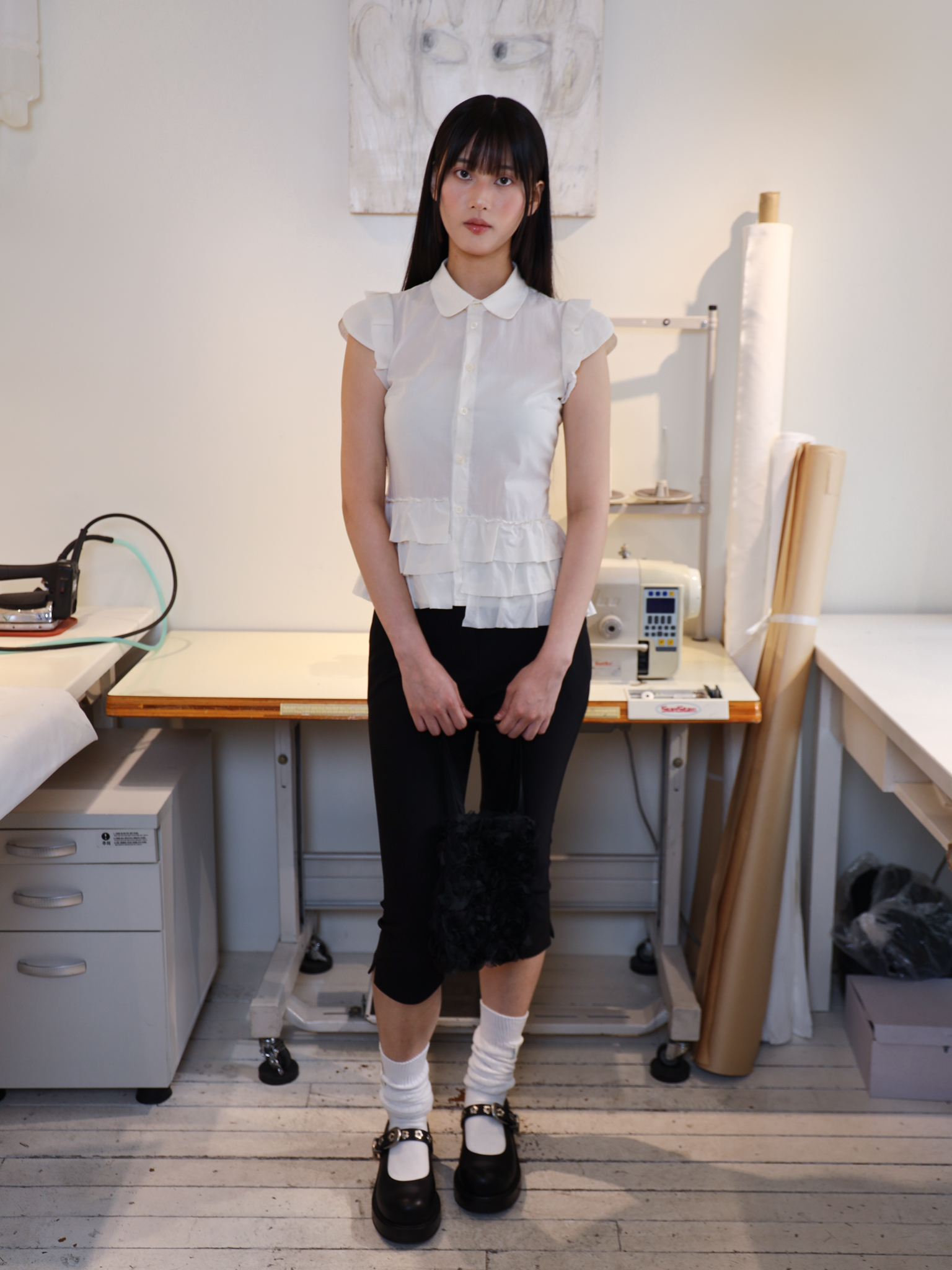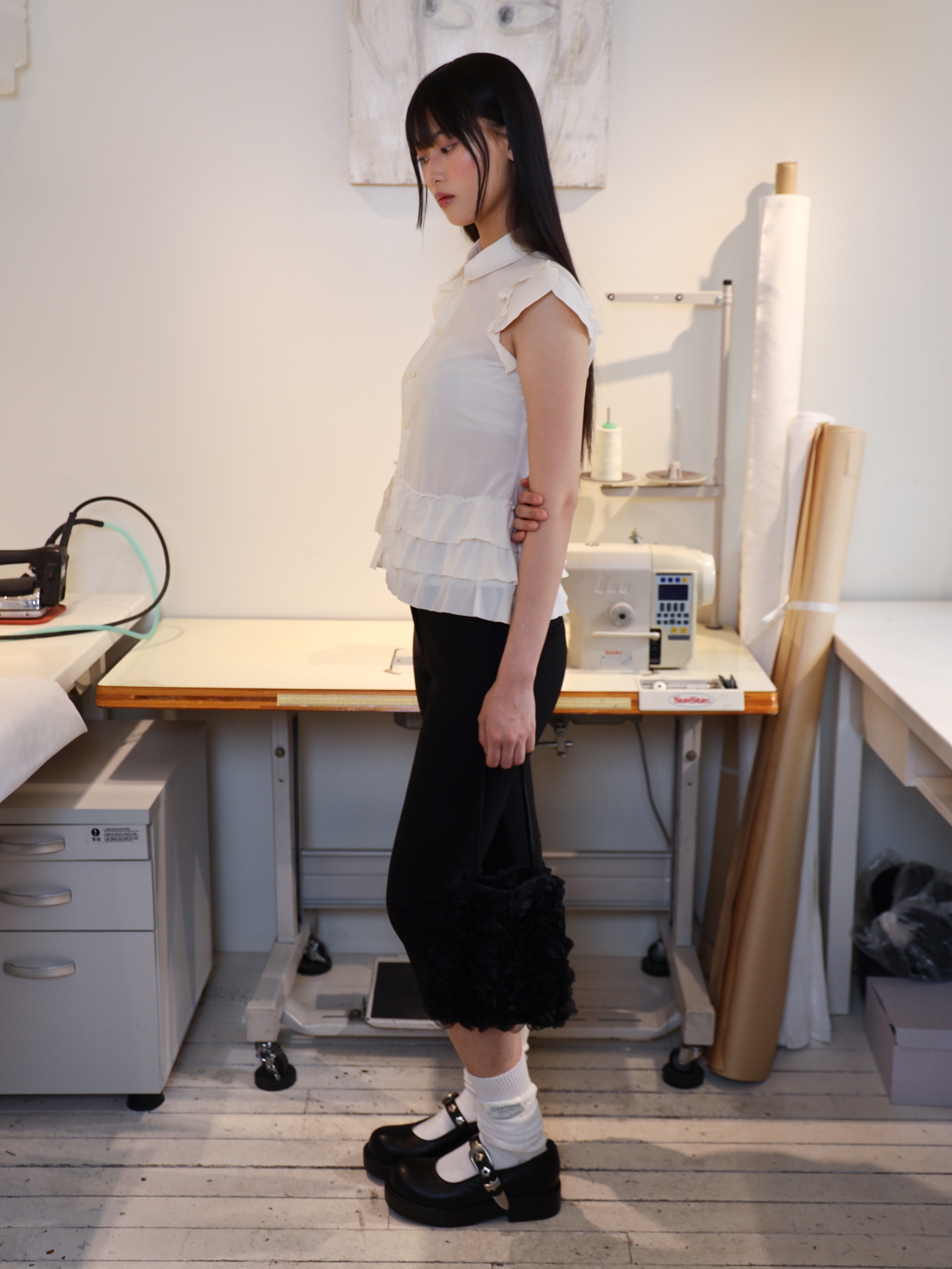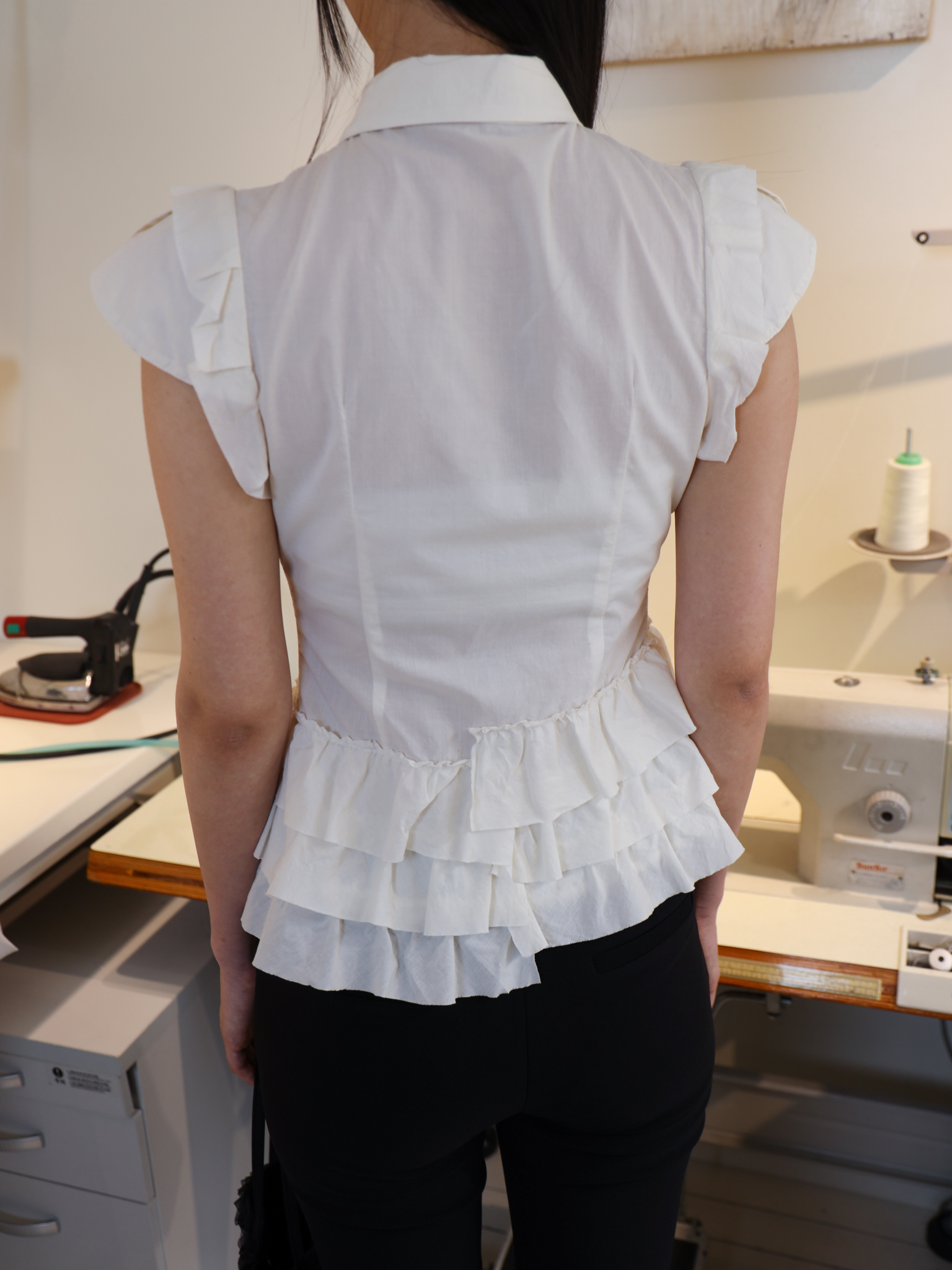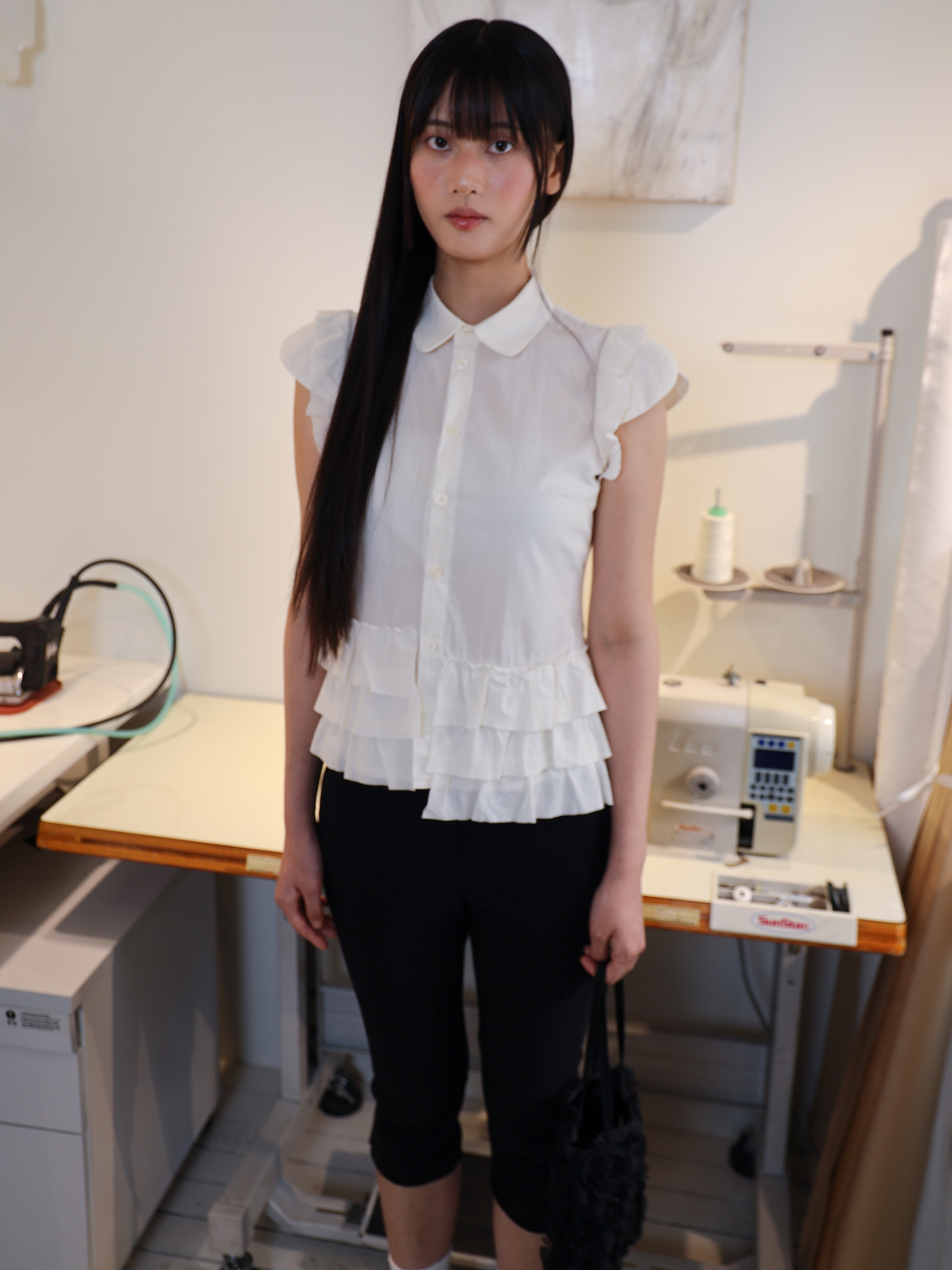 몸판 양쪽에 비대칭으로 더해진 러플 장식이
