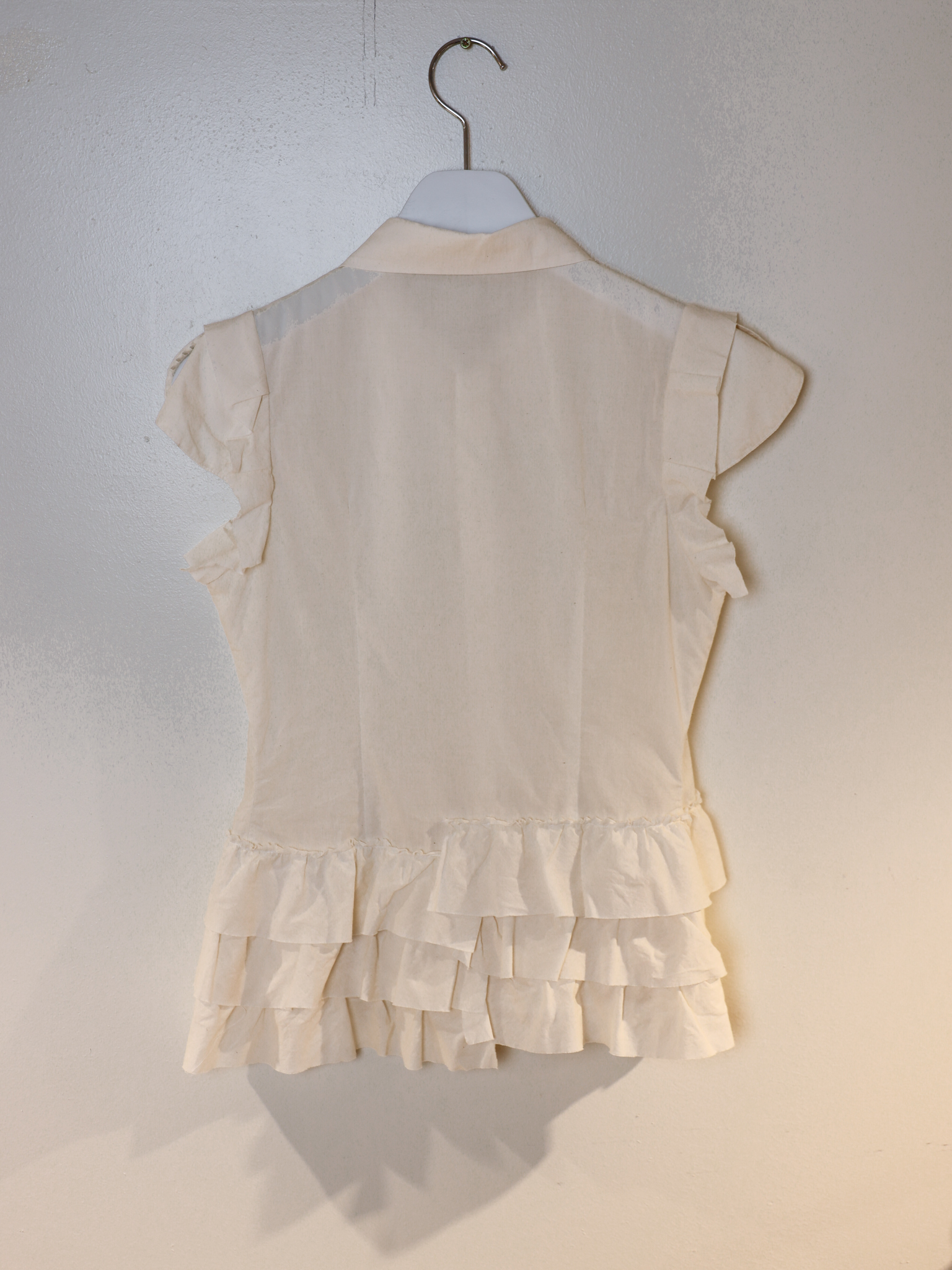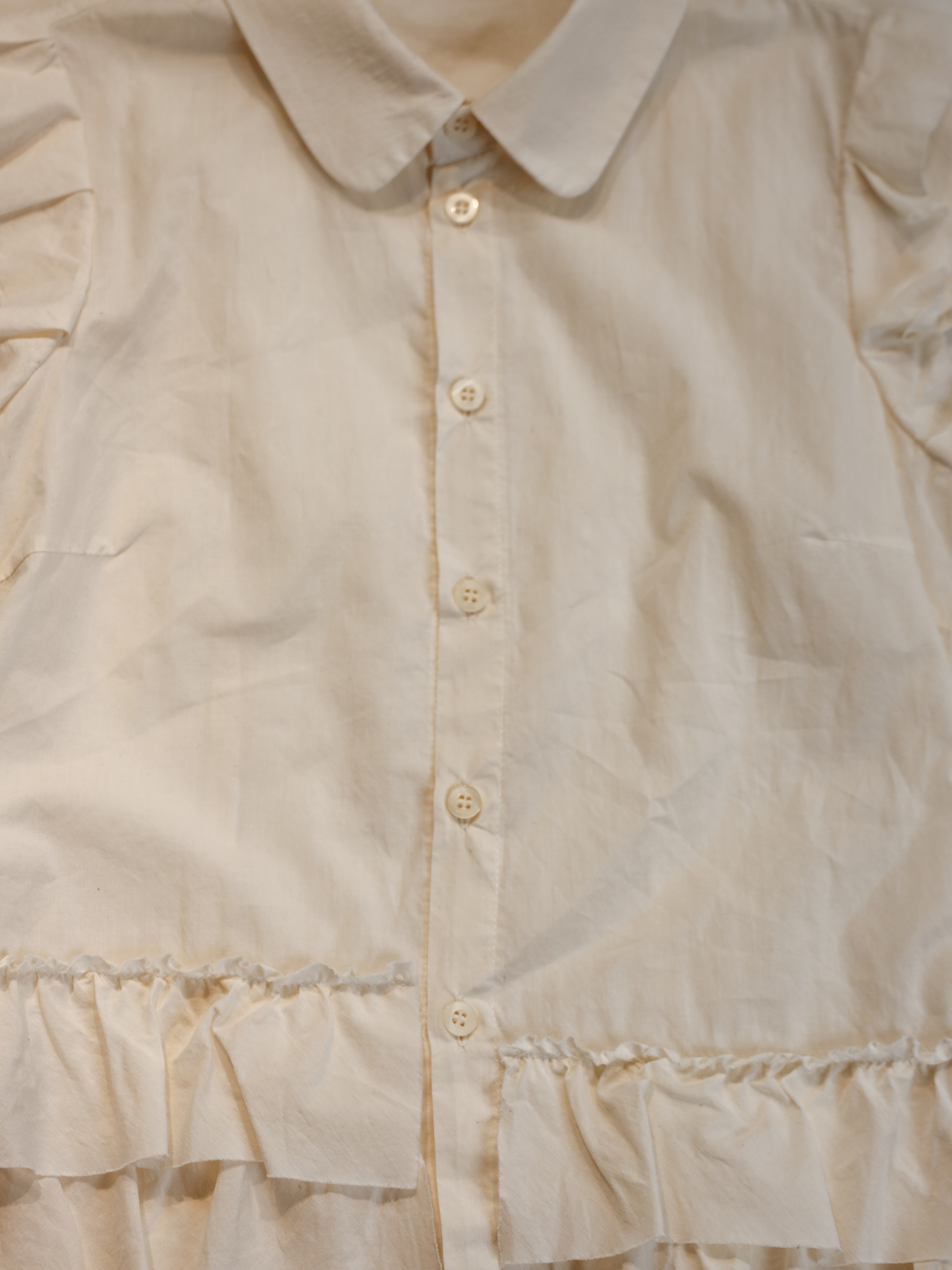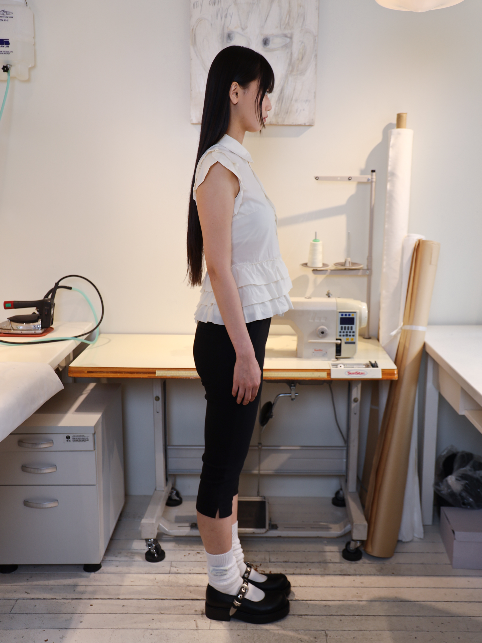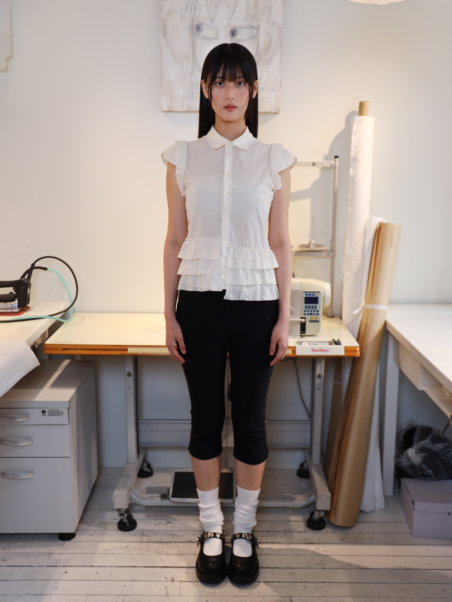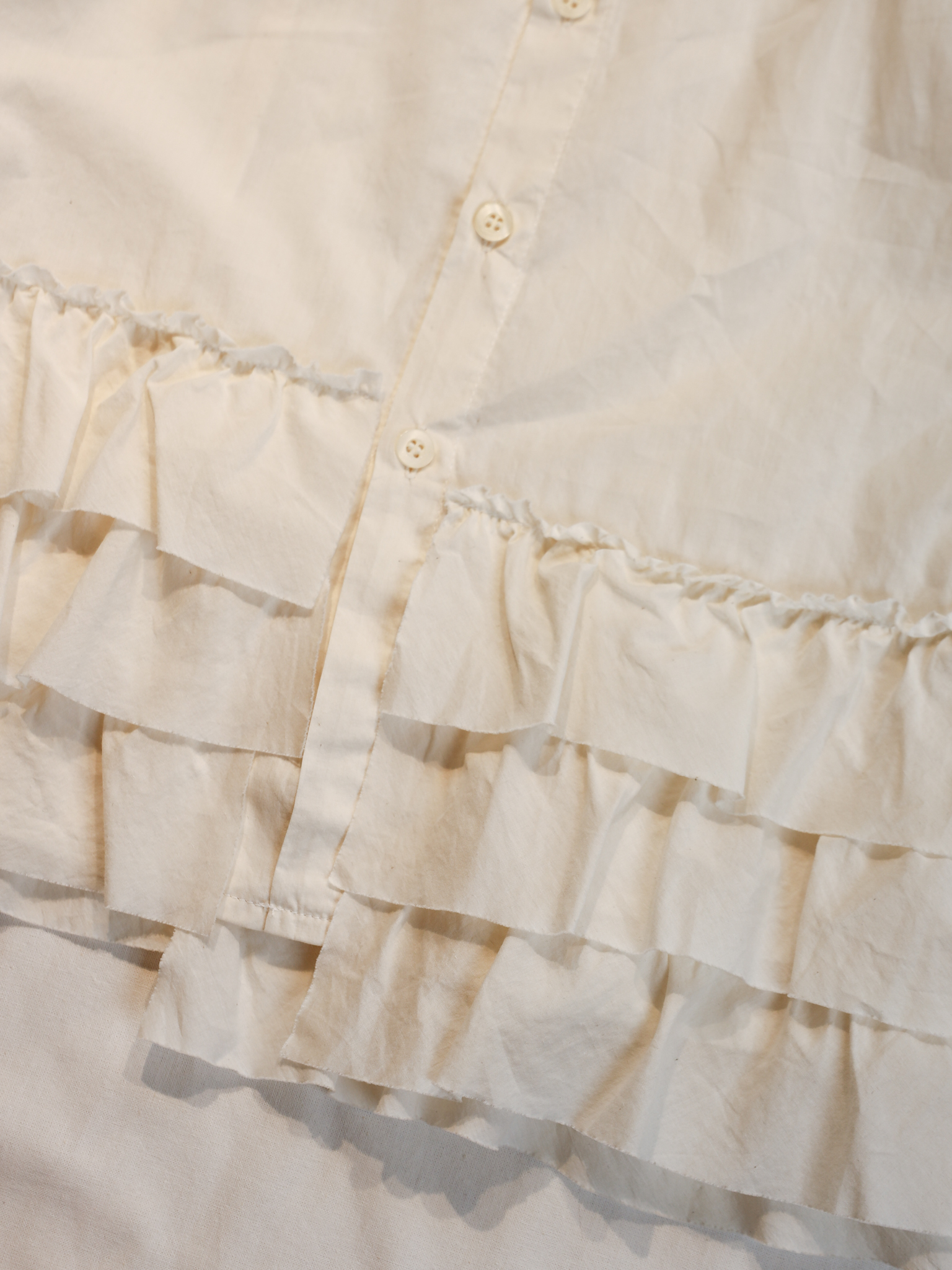 몸판 양쪽에 비대칭으로 더해진 러플 장식이