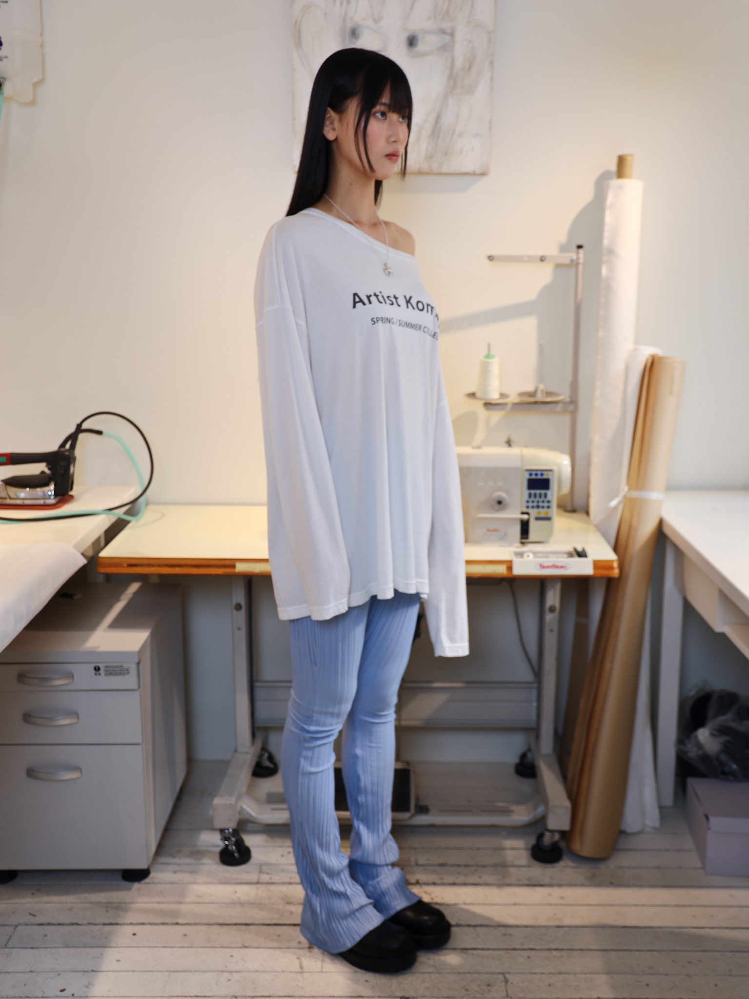 긴 기장의 티셔츠와 함께 네추럴한 무드로 스타일링하거나,
