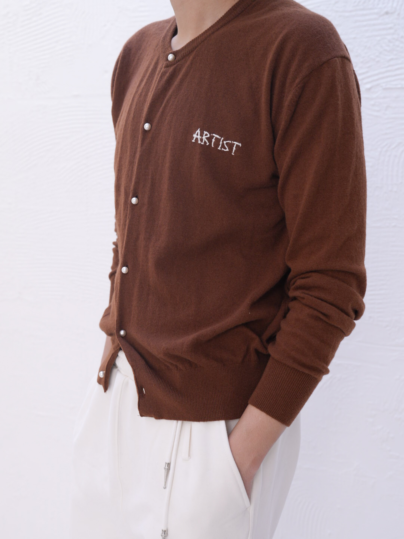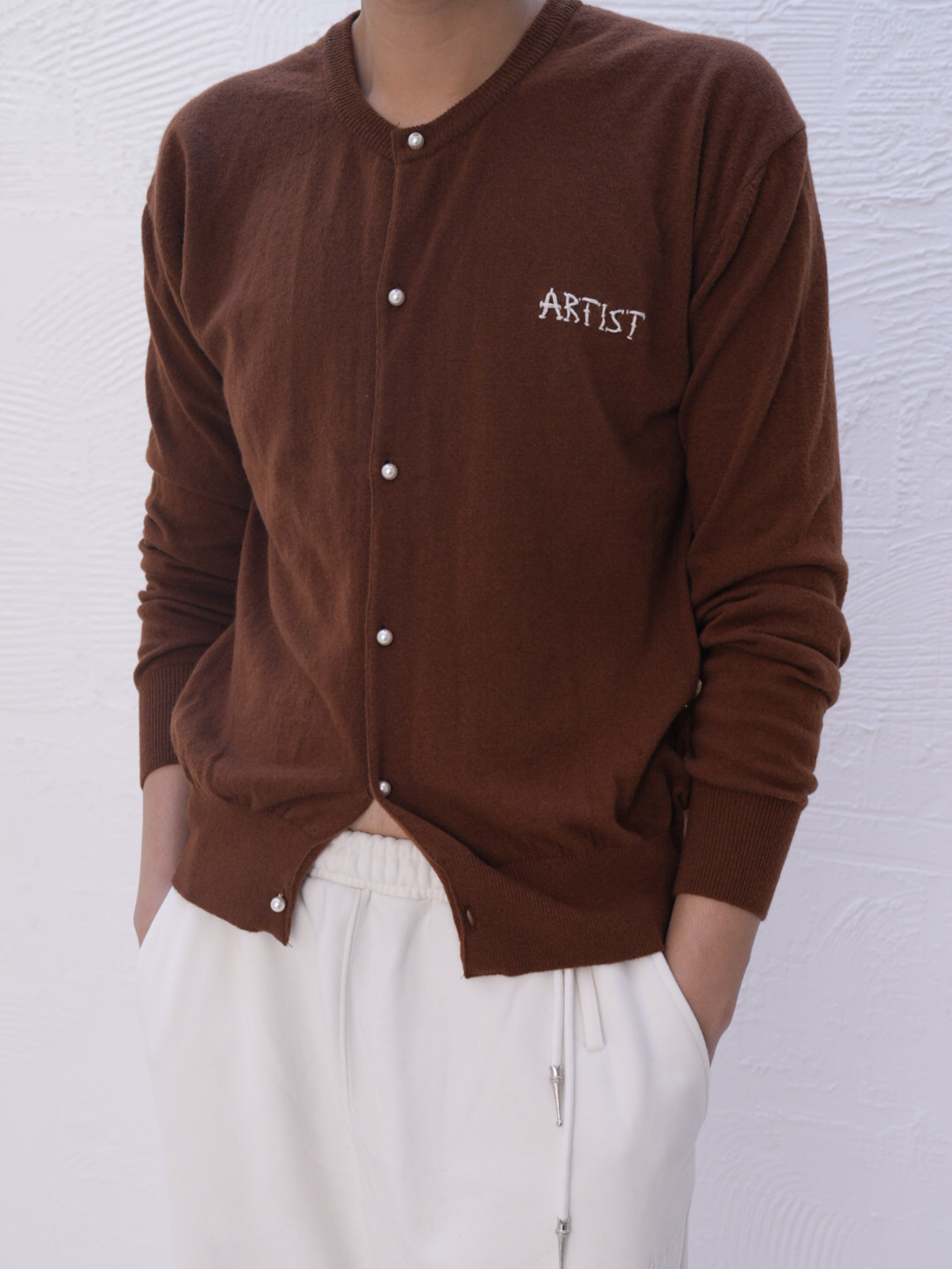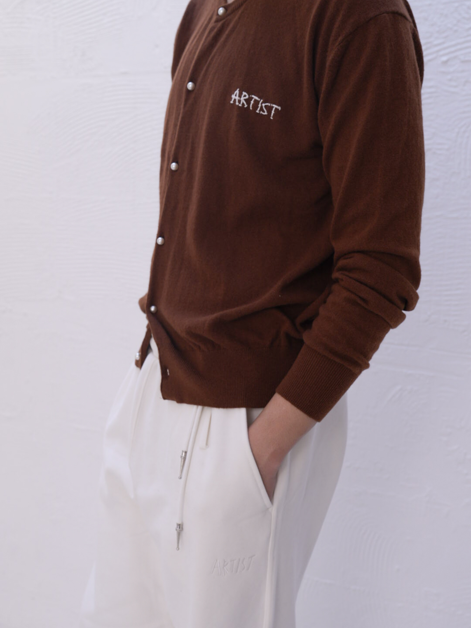 가슴 부분에는 아티스트 컴플렉스 디자이너의 손바느질로 디자인된 ARTIST 로고와 진주 단추가 포인트입니다.