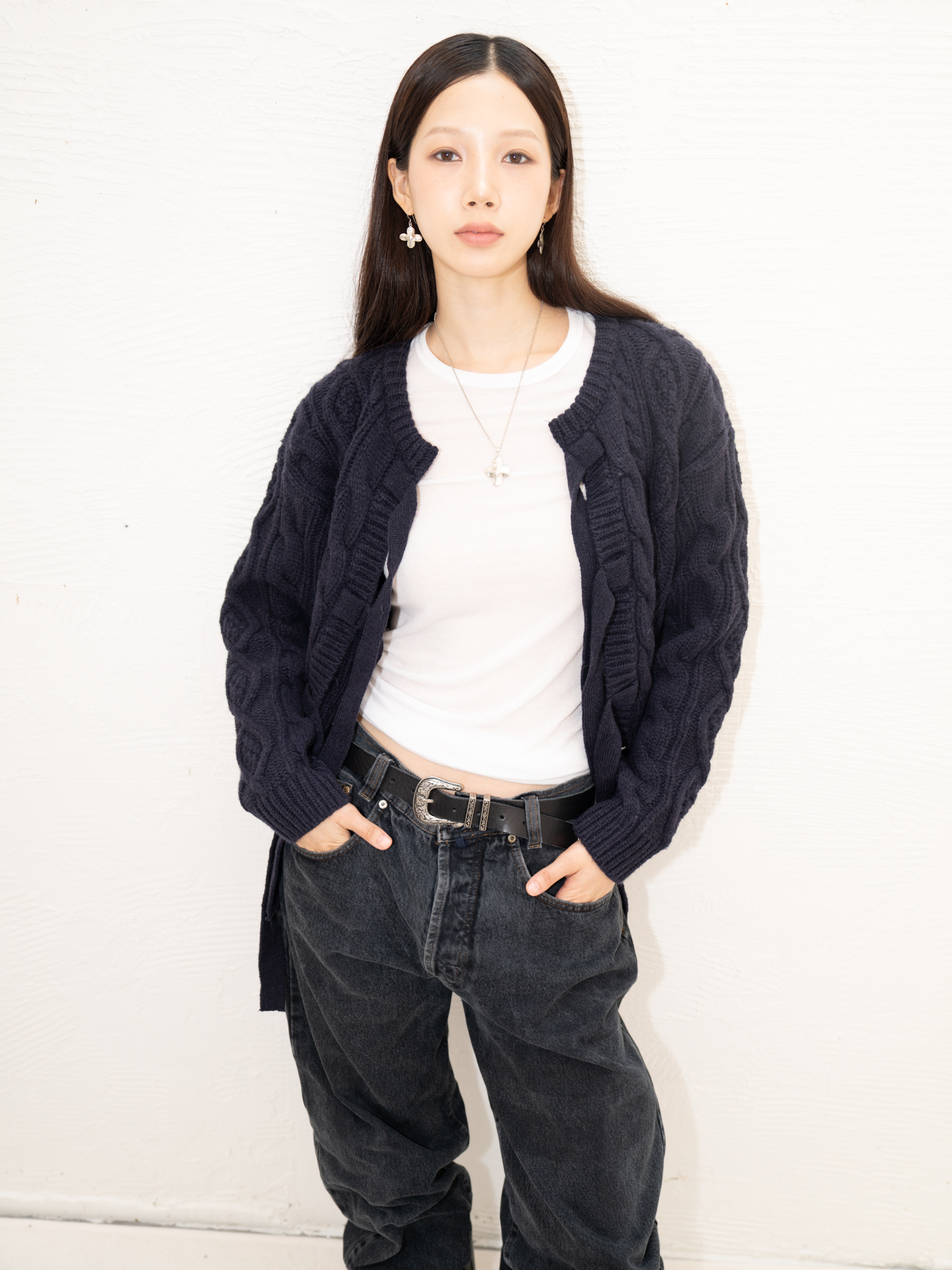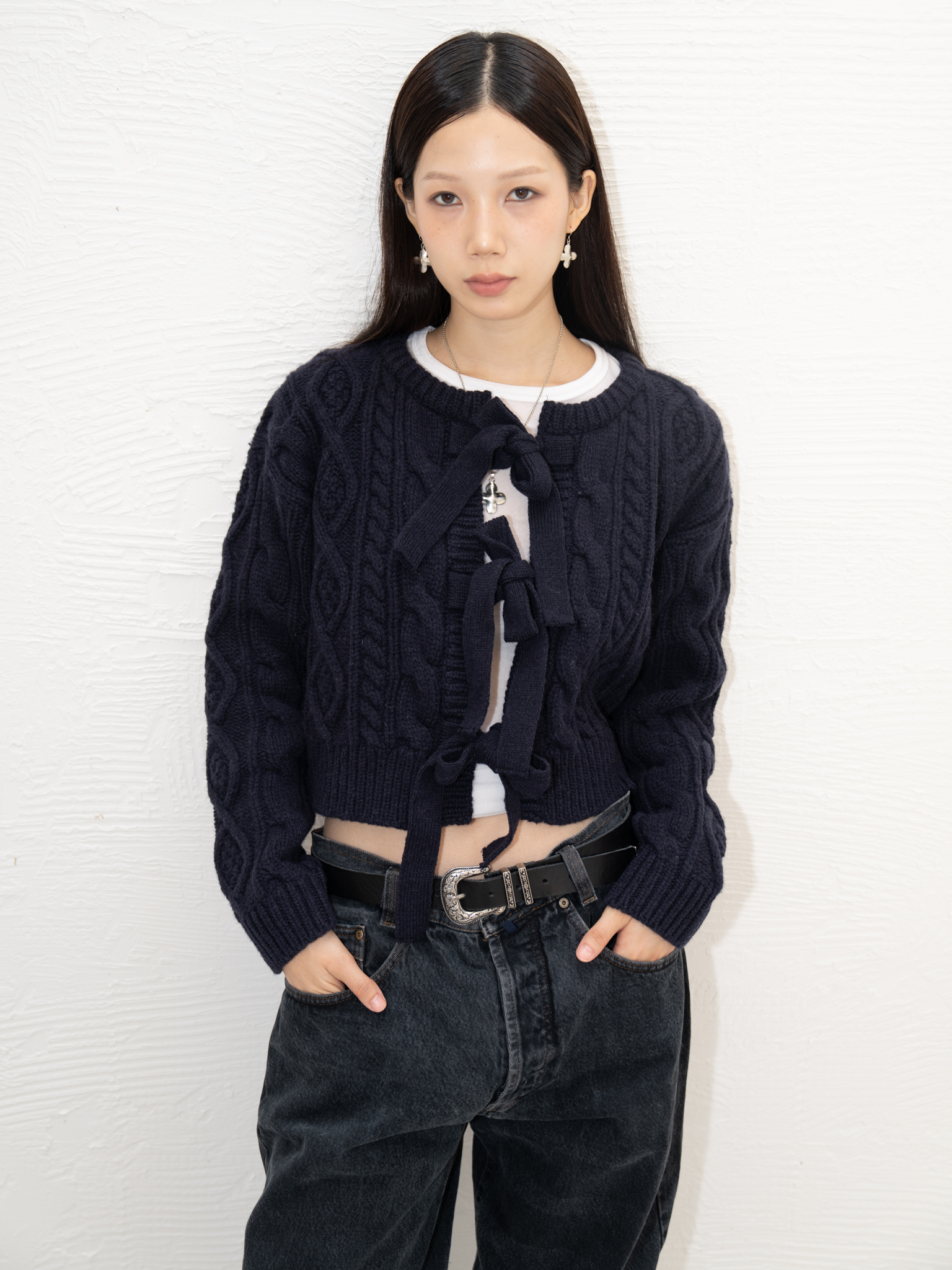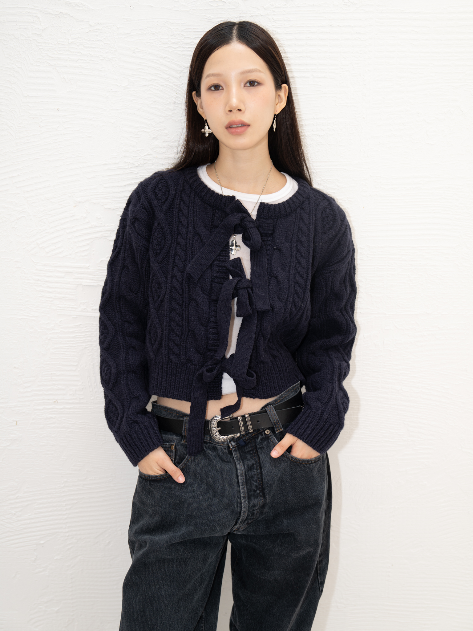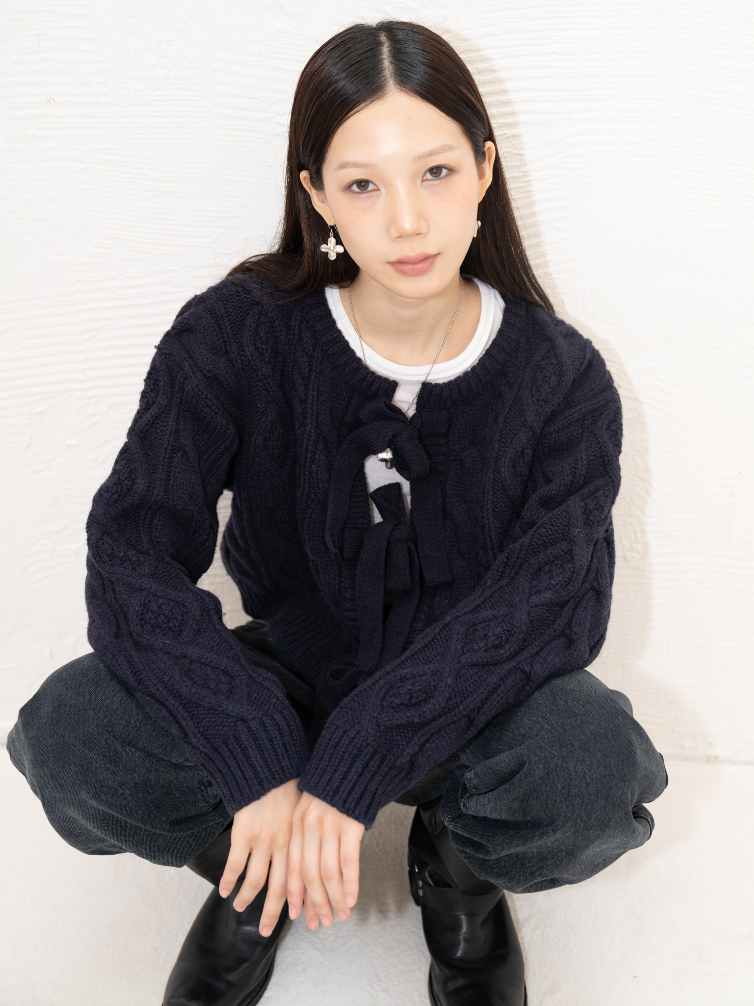 포근한 감성이 느껴지는 레이스업 케이블 니트 가디건입니다.