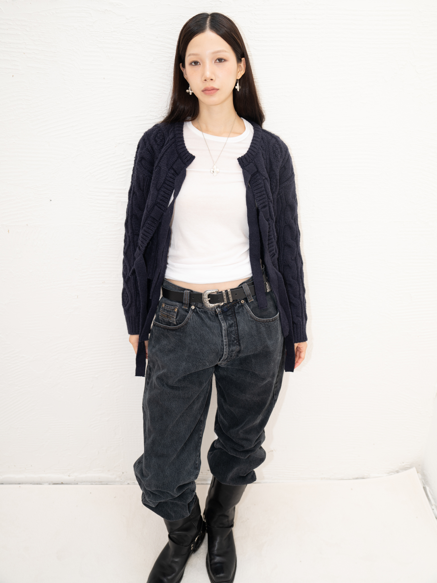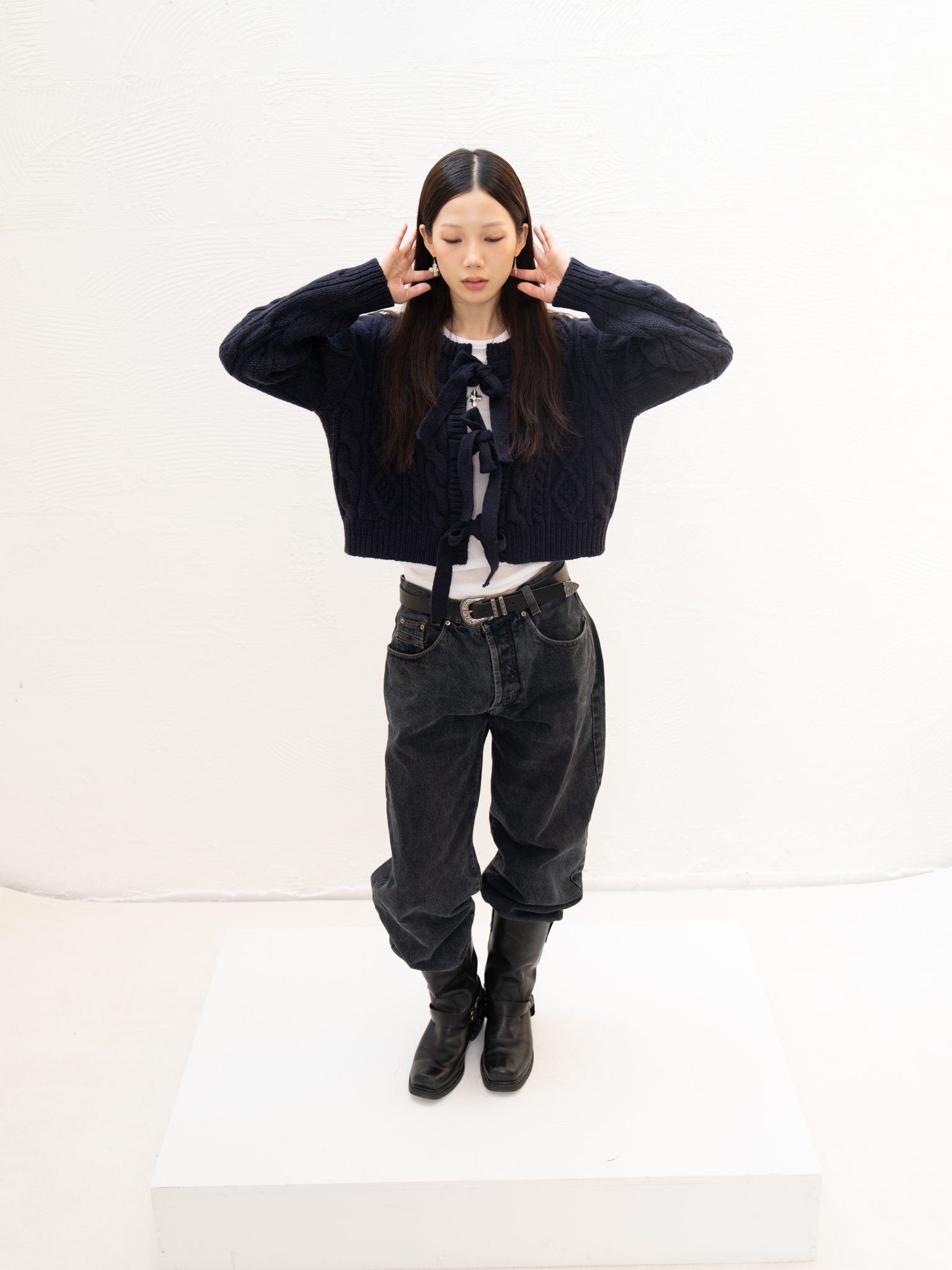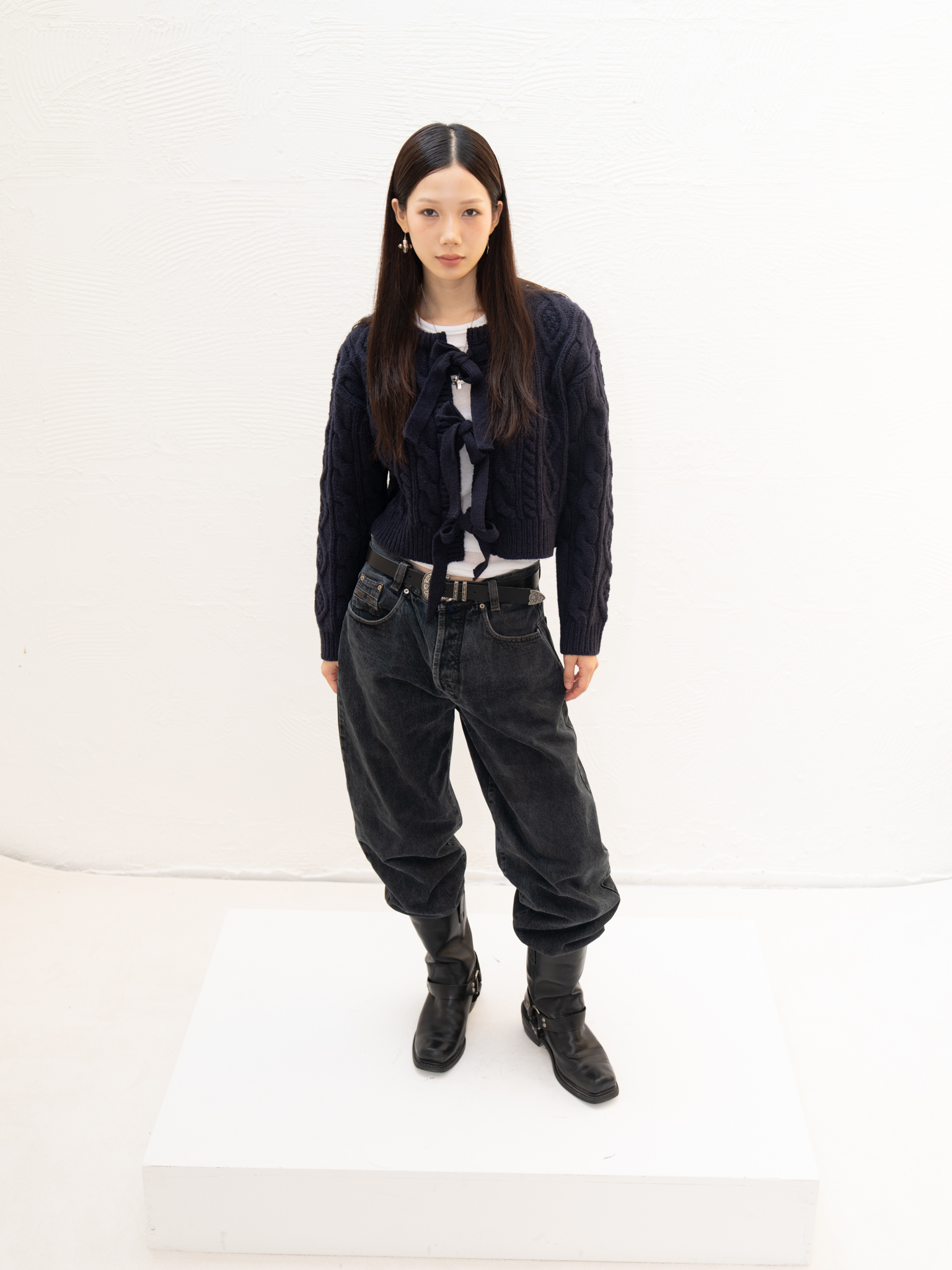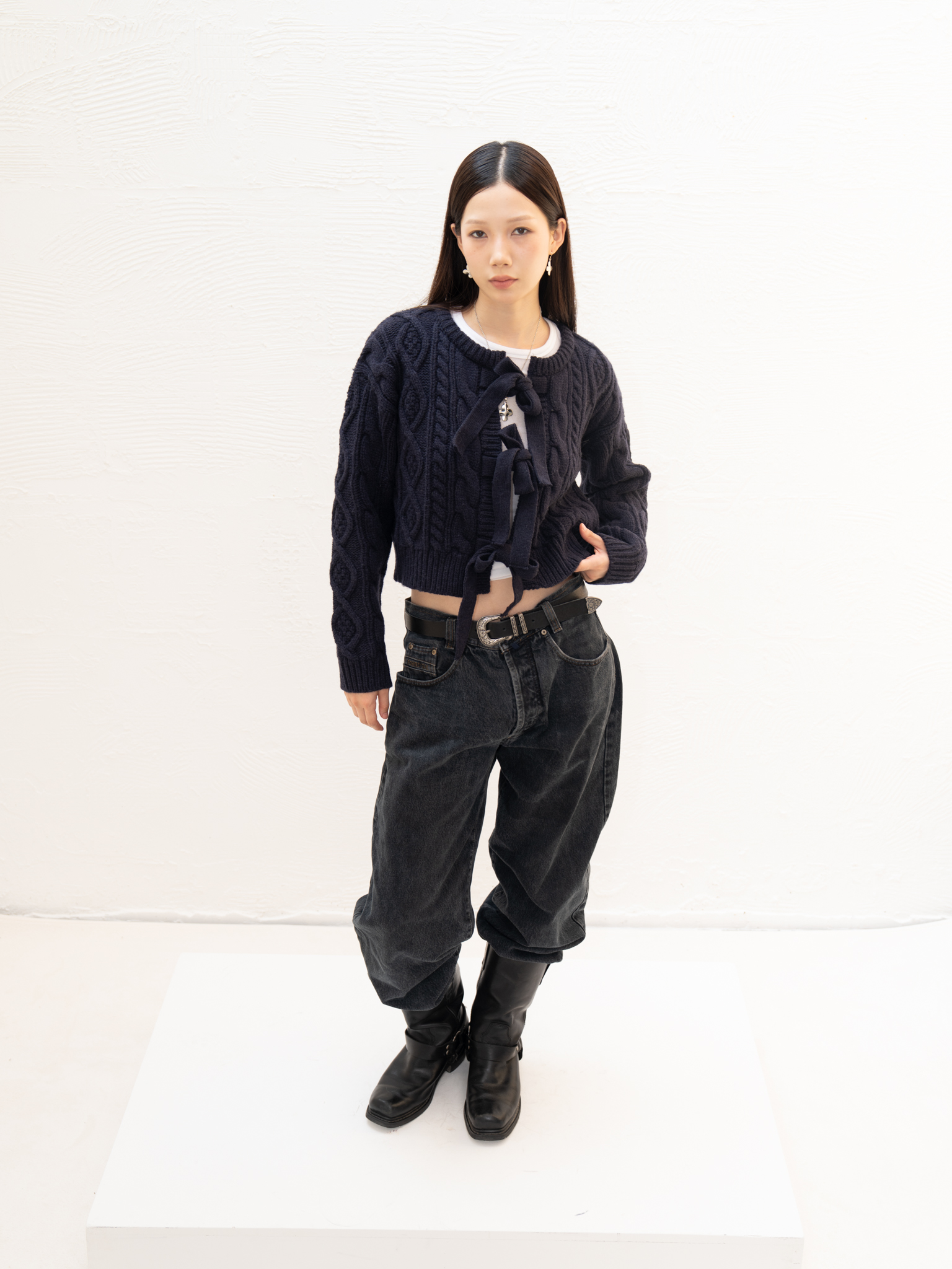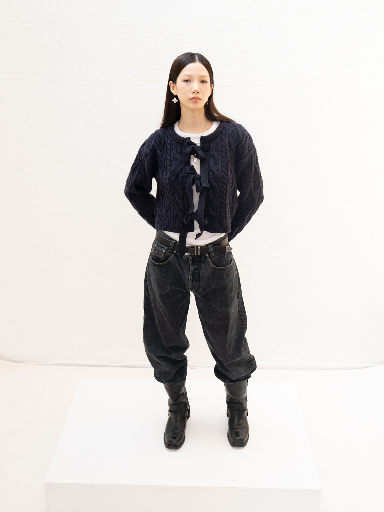 포근한 감성이 느껴지는 레이스업 케이블 니트 가디건입니다.