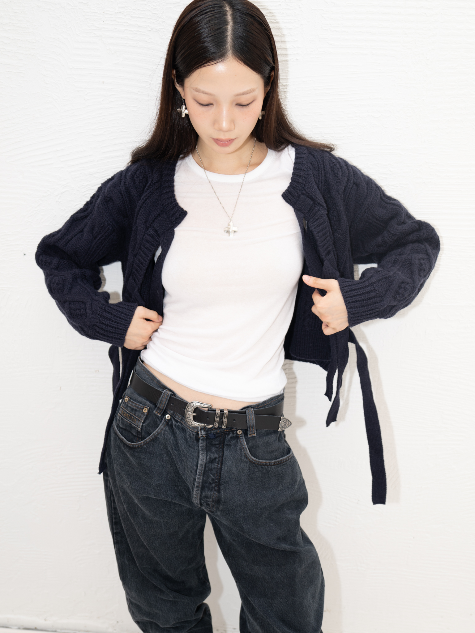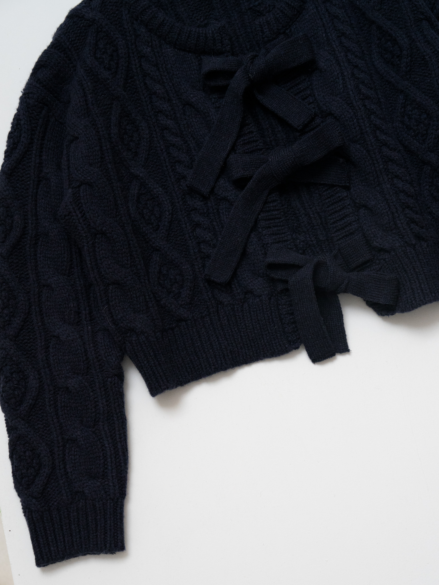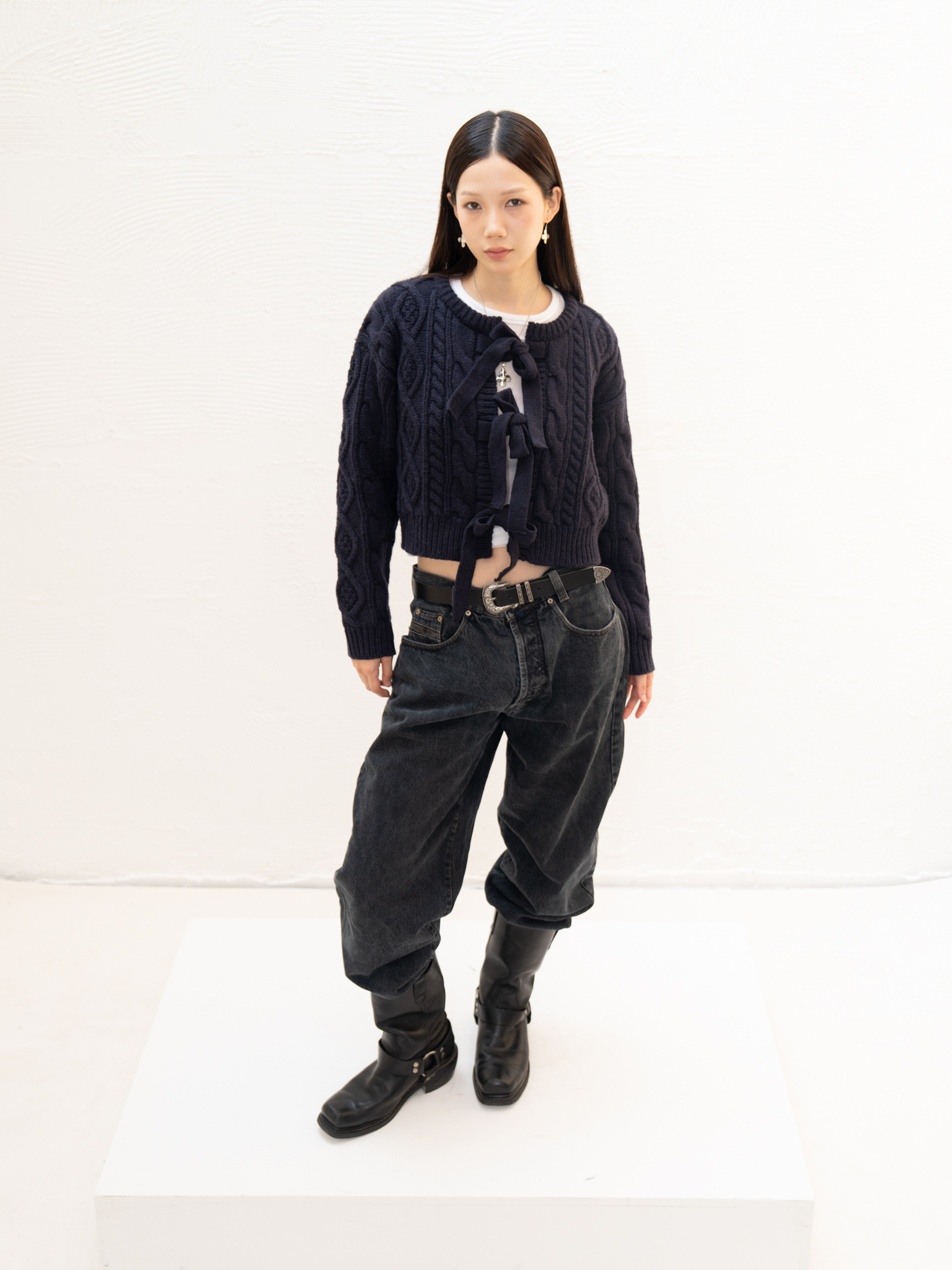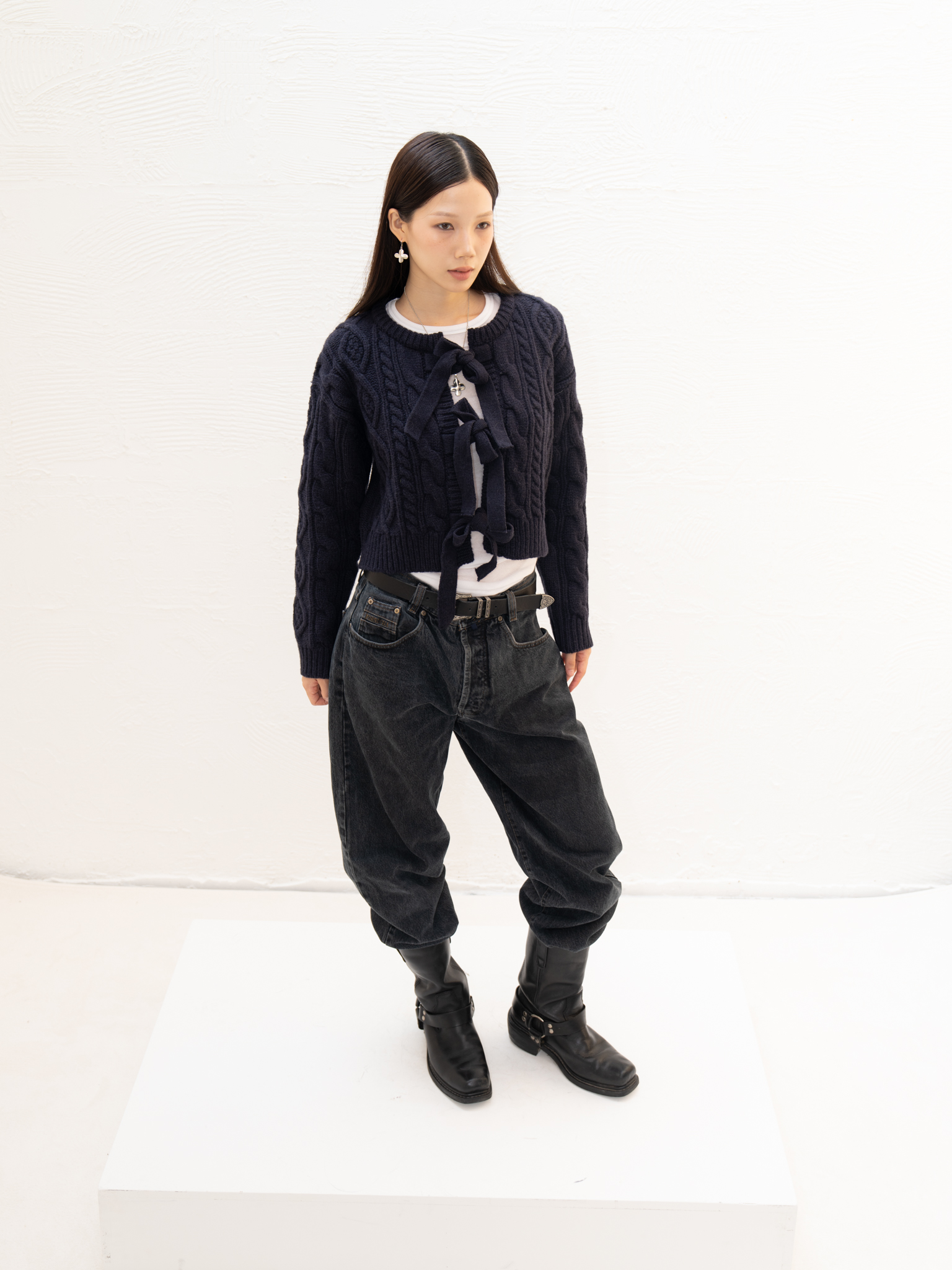 포근한 감성이 느껴지는 레이스업 케이블 니트 가디건입니다.