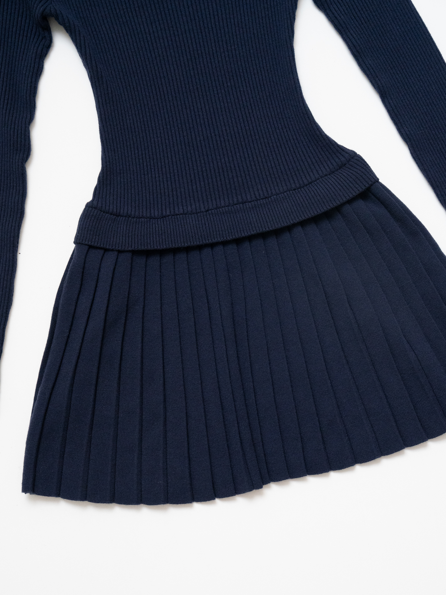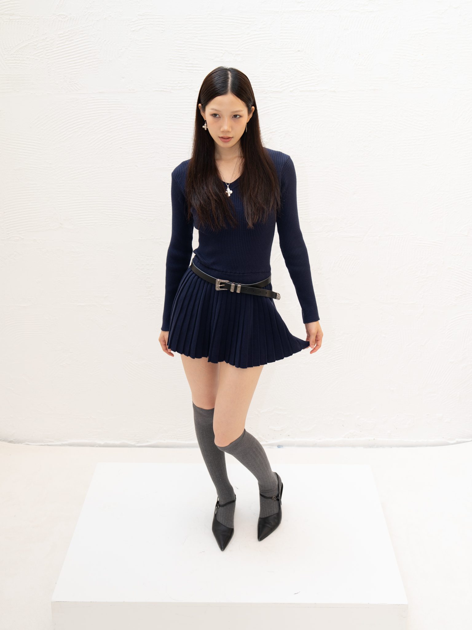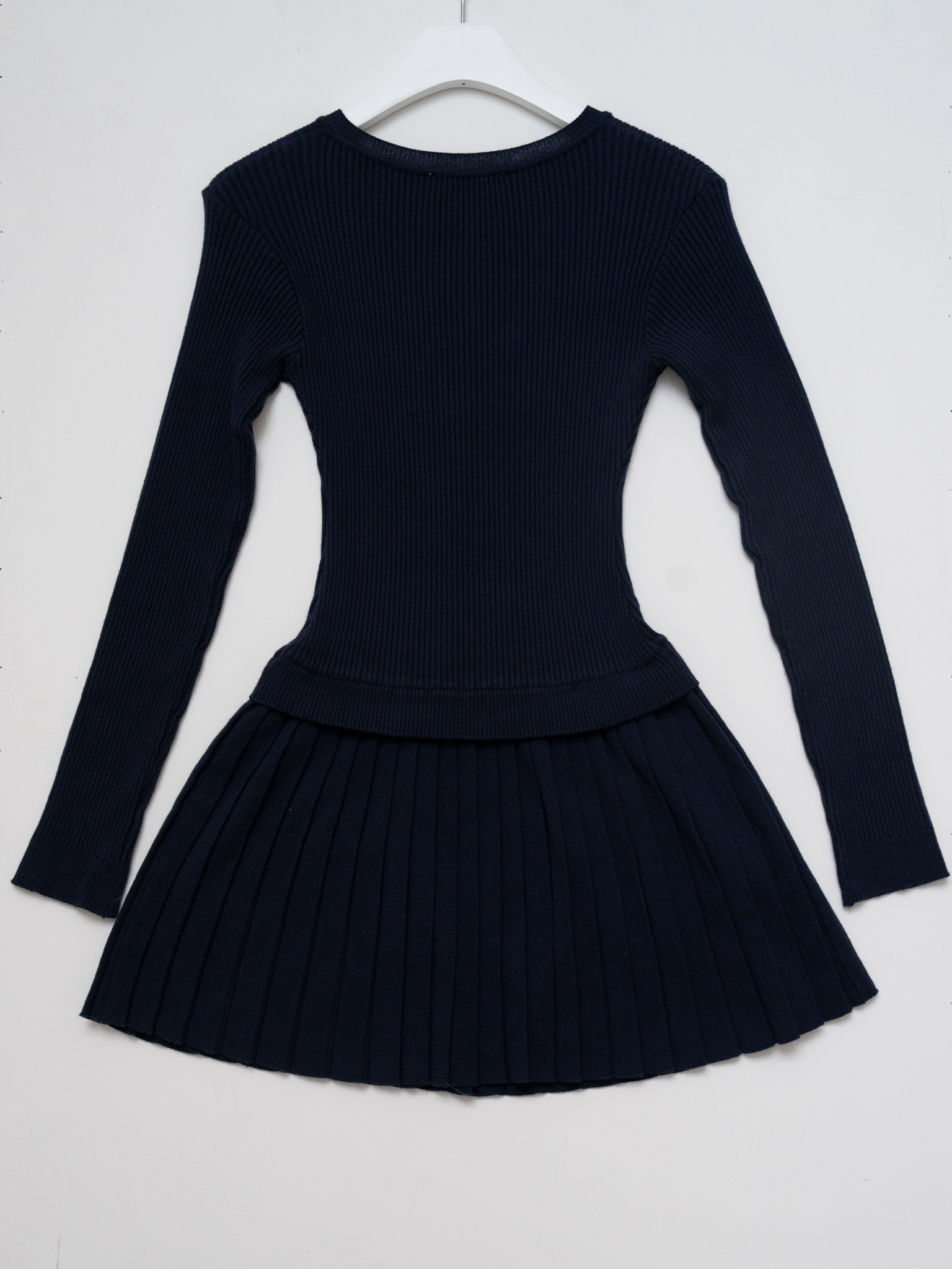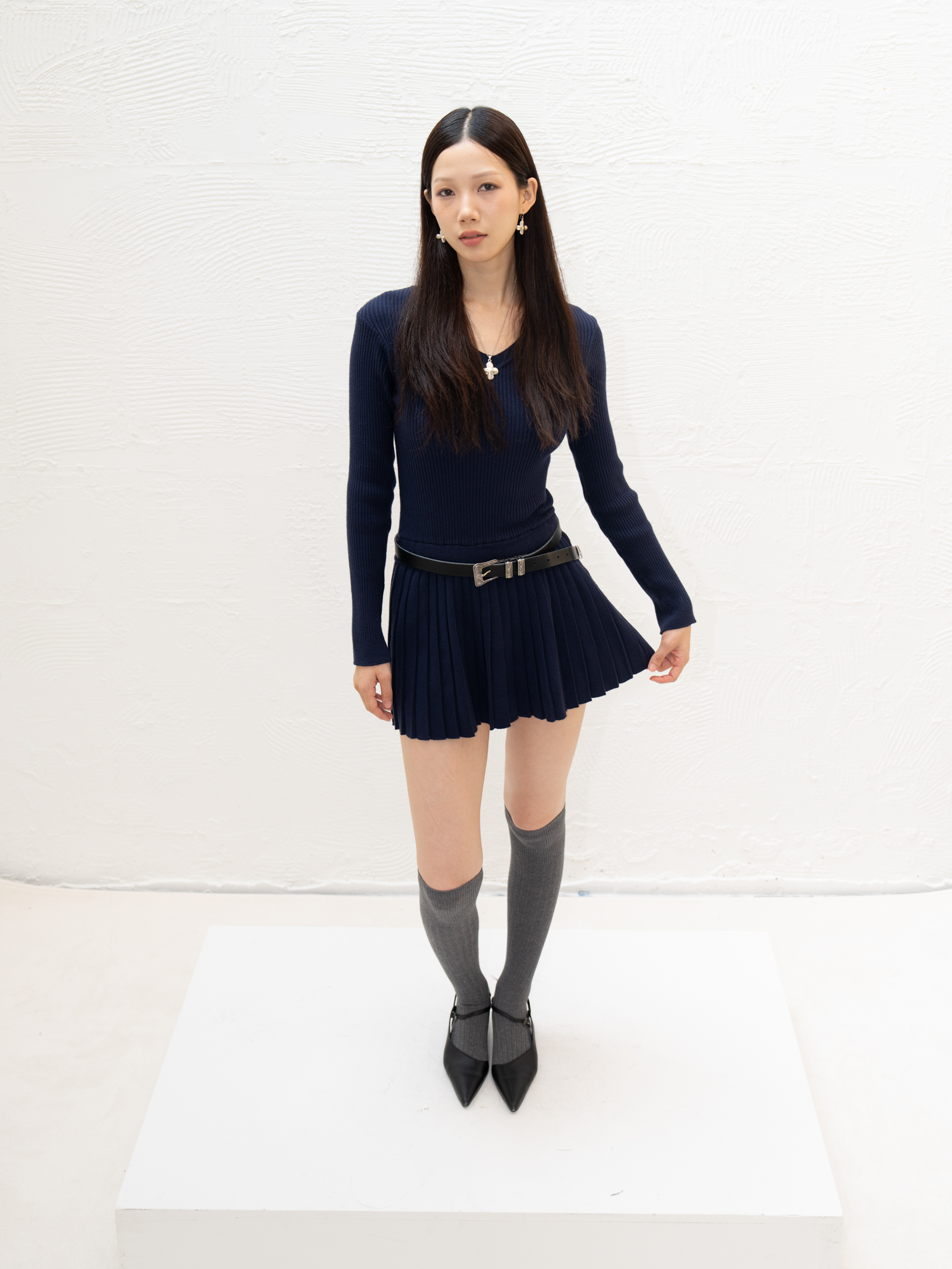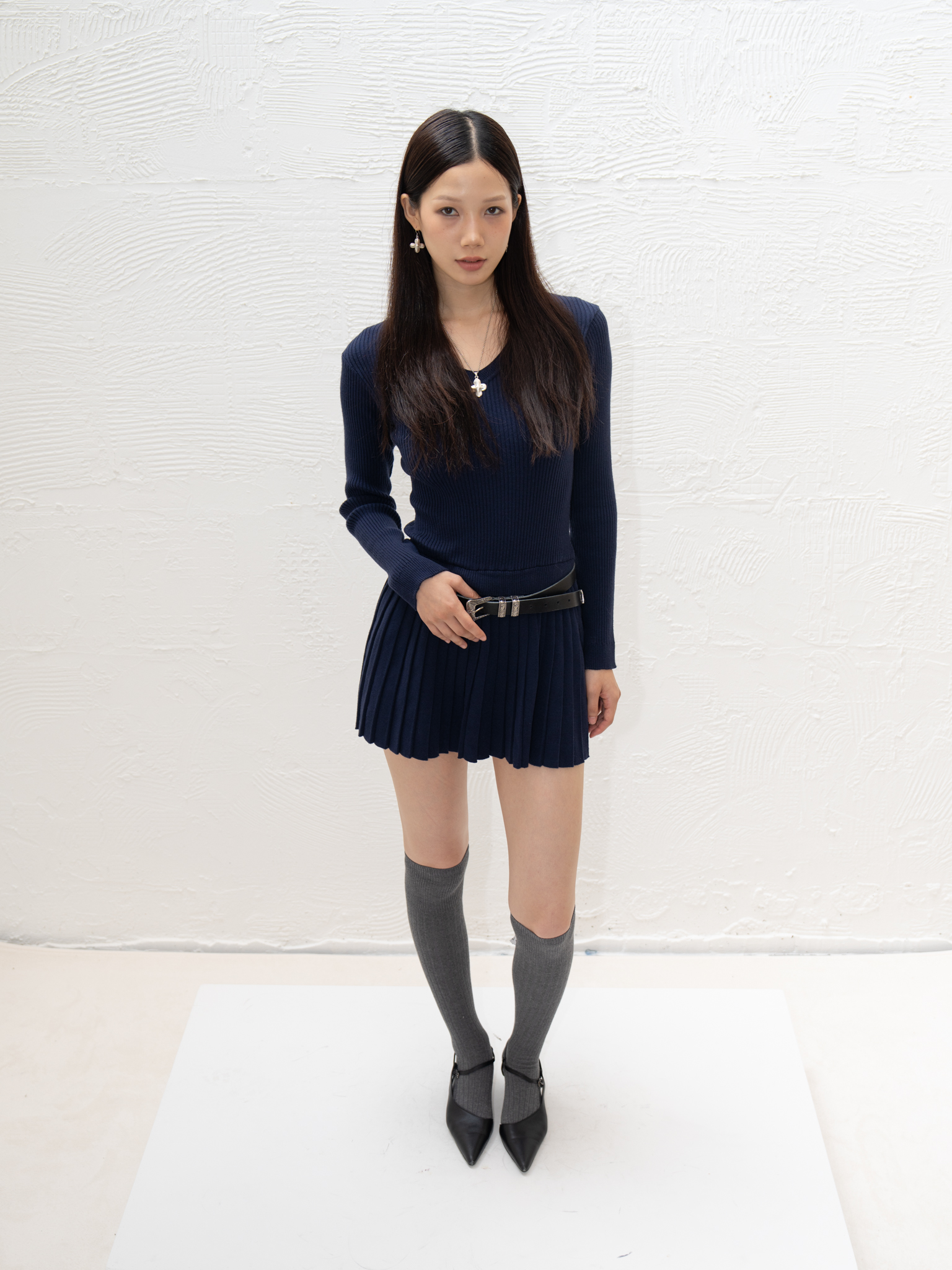골지 짜임의 상의 부분과 플리츠(주름) 스커트가